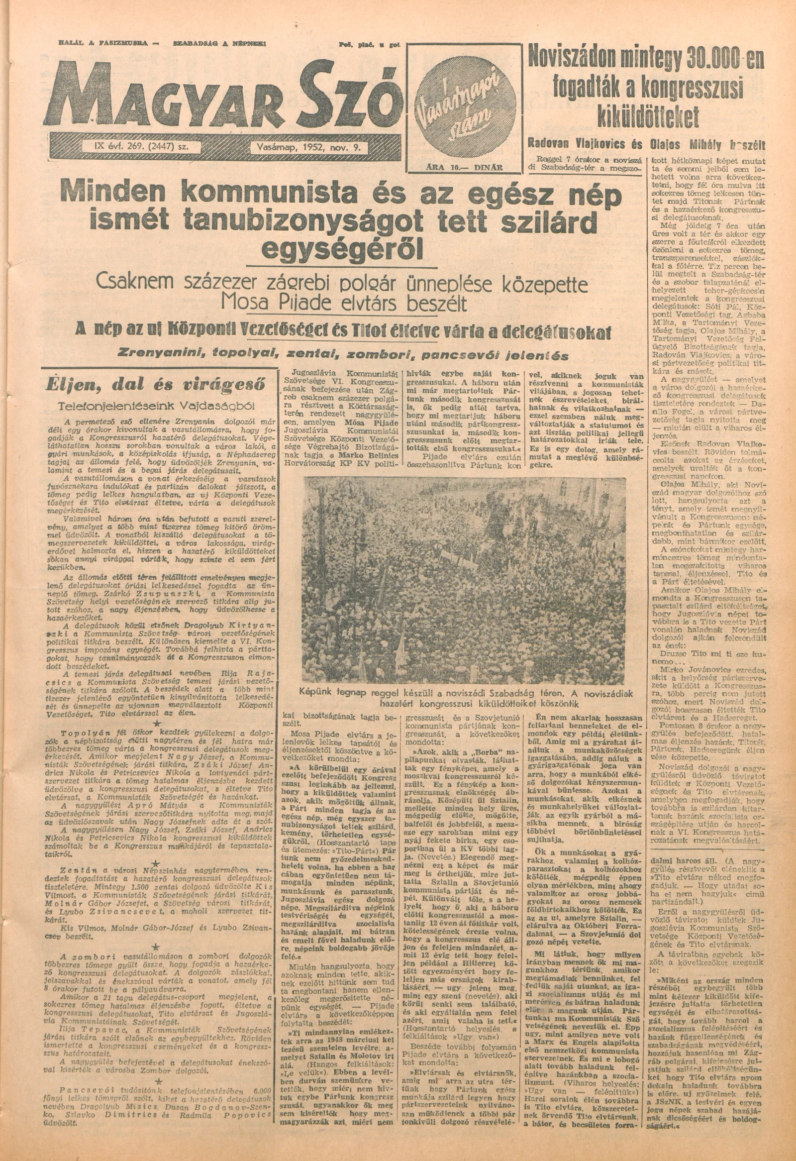 Magyar Szó, 9. évf. 1952. november 9. 269. sz. 1–6. oldal