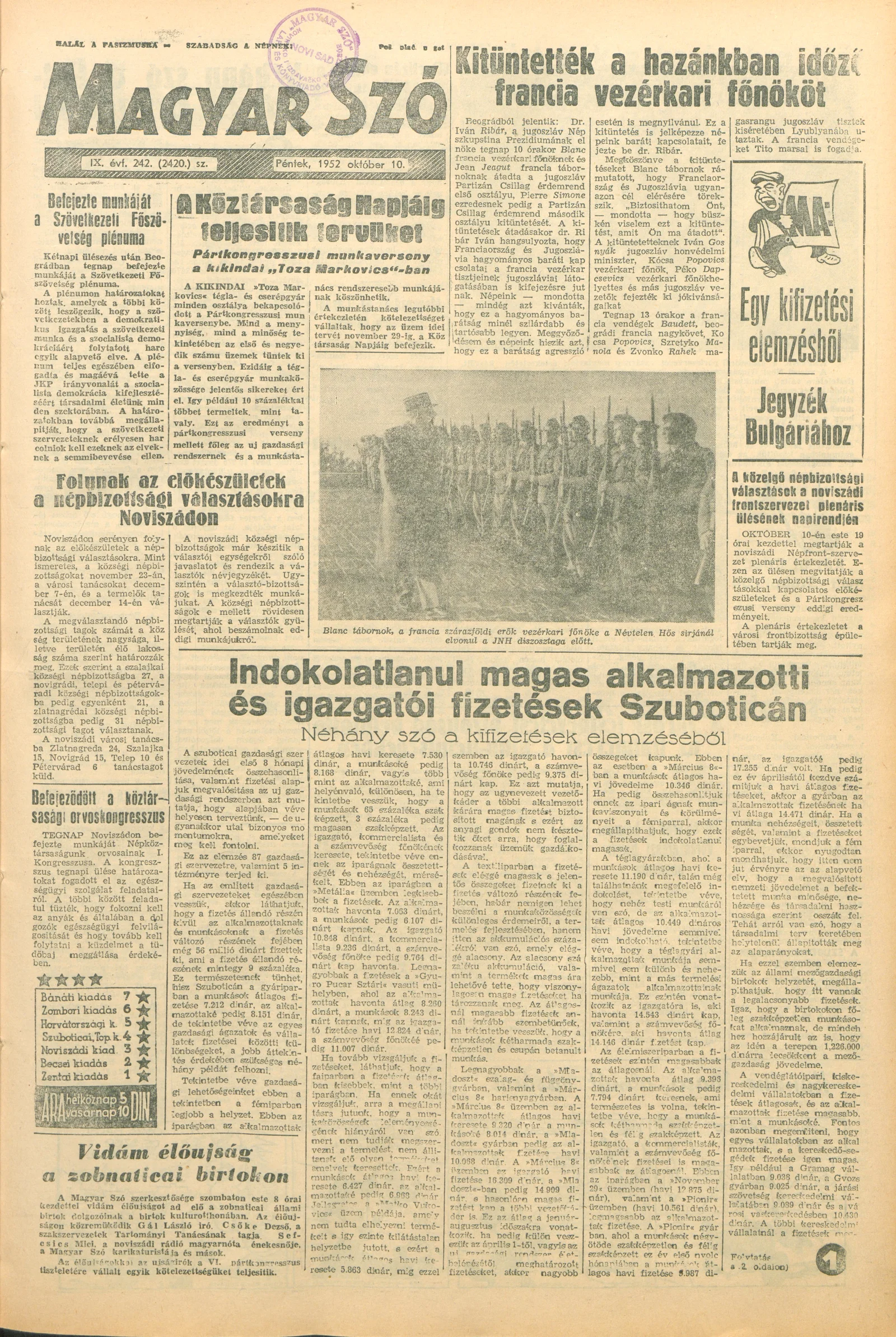 Magyar Szó, 9. évf. 1952. október 10. 242. sz. 1–8. oldal