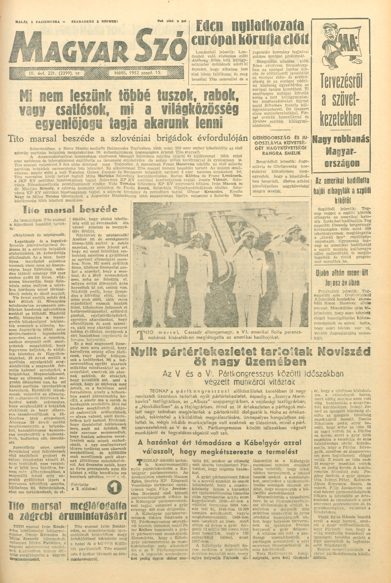 Magyar Szó, 9. évf. 1952. szeptember 15. 221. sz. 1–4. oldal