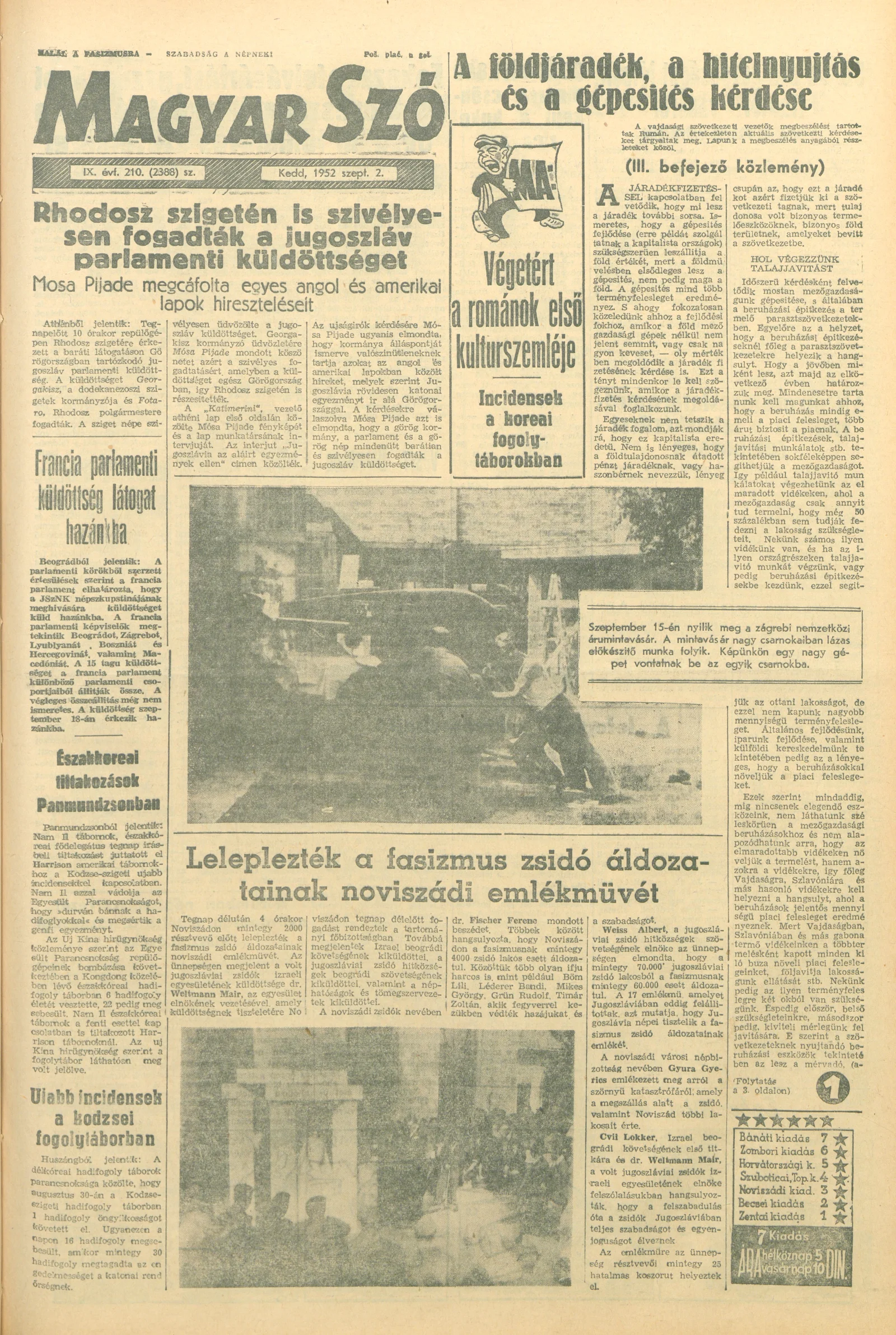 Magyar Szó, 9. évf. 1952. szeptember 2. 210. sz. 1–10. oldal