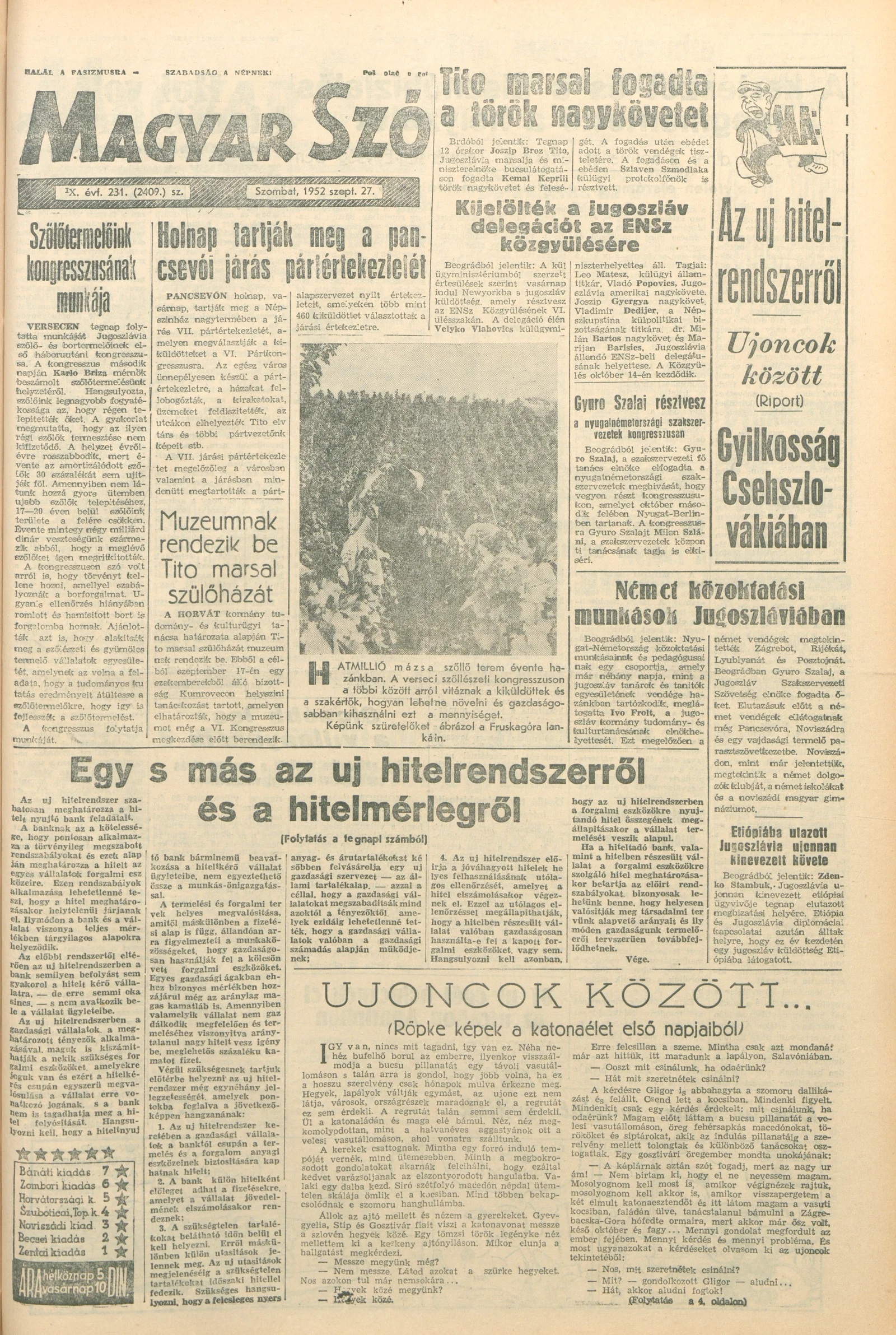 Magyar Szó, 9. évf. 1952. szeptember 27. 231. sz. 1–8. oldal