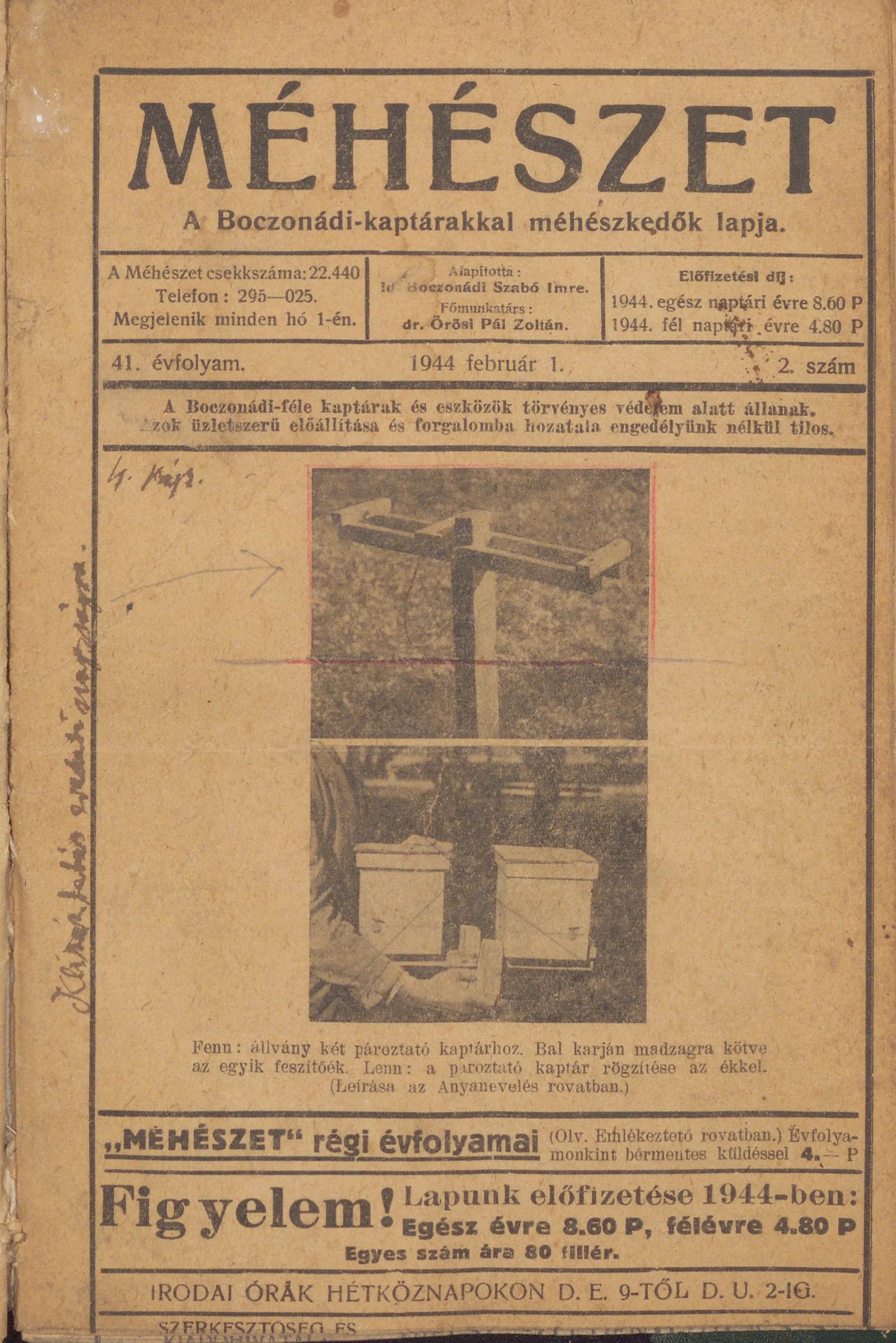 Méhészet, 41. évf. 1944. február 1. 2. sz.