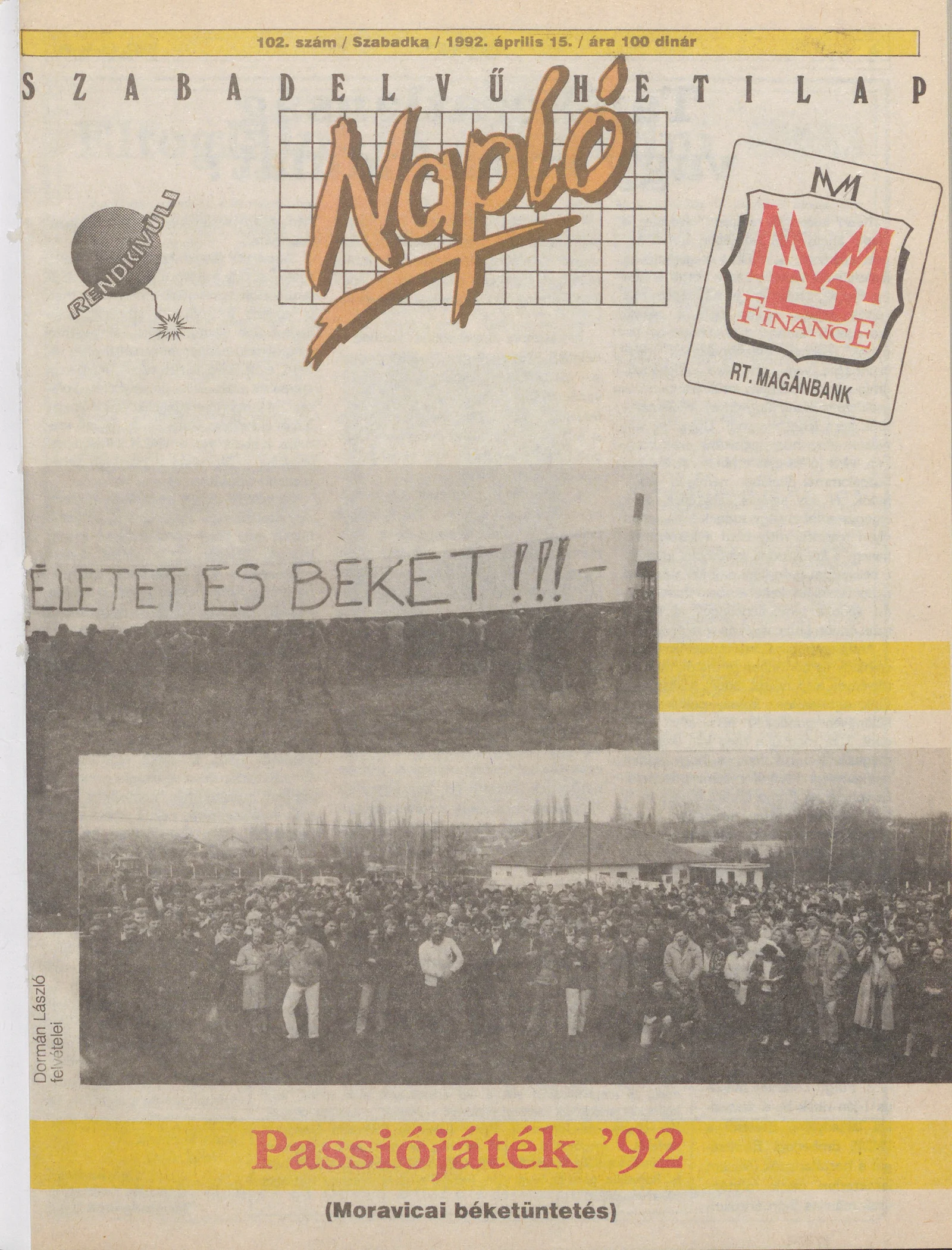 Napló - Szabadelvű hetilap, 3. évf. 1992. április 15. 102. sz.