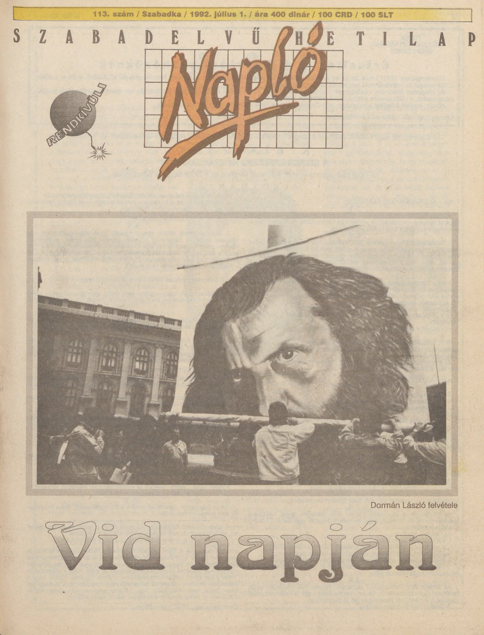 Napló - Szabadelvű hetilap, 3. évf. 1992. július 1. 113. sz.