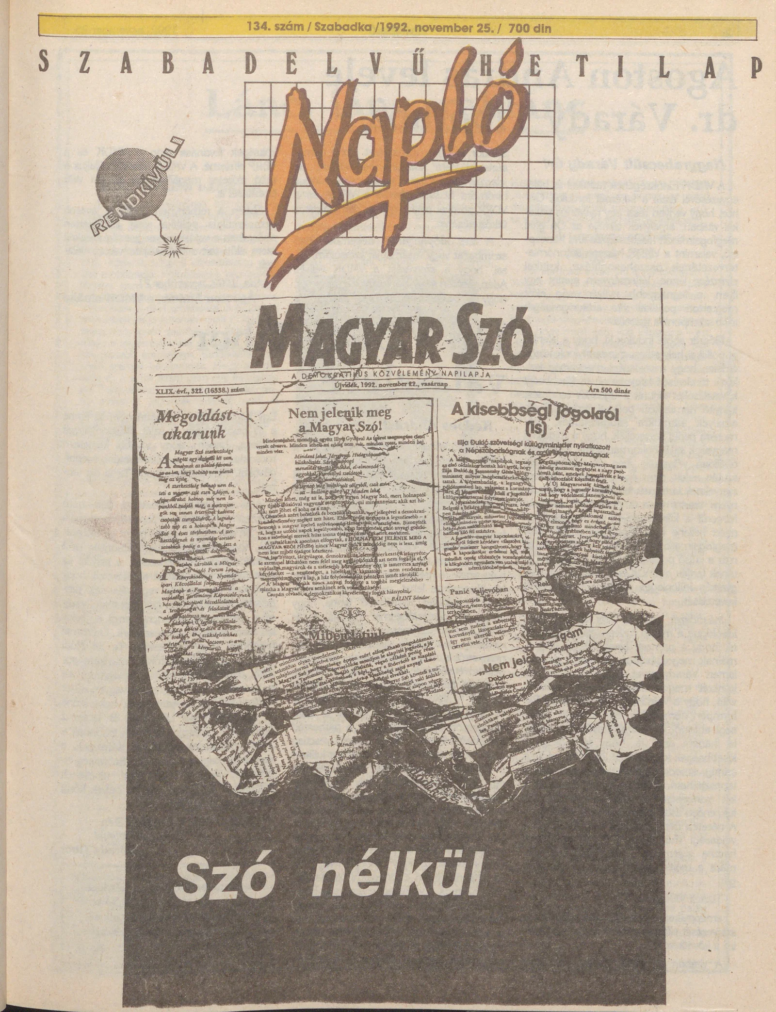 Napló - Szabadelvű hetilap, 3. évf. 1992. november 25. 134. sz.
