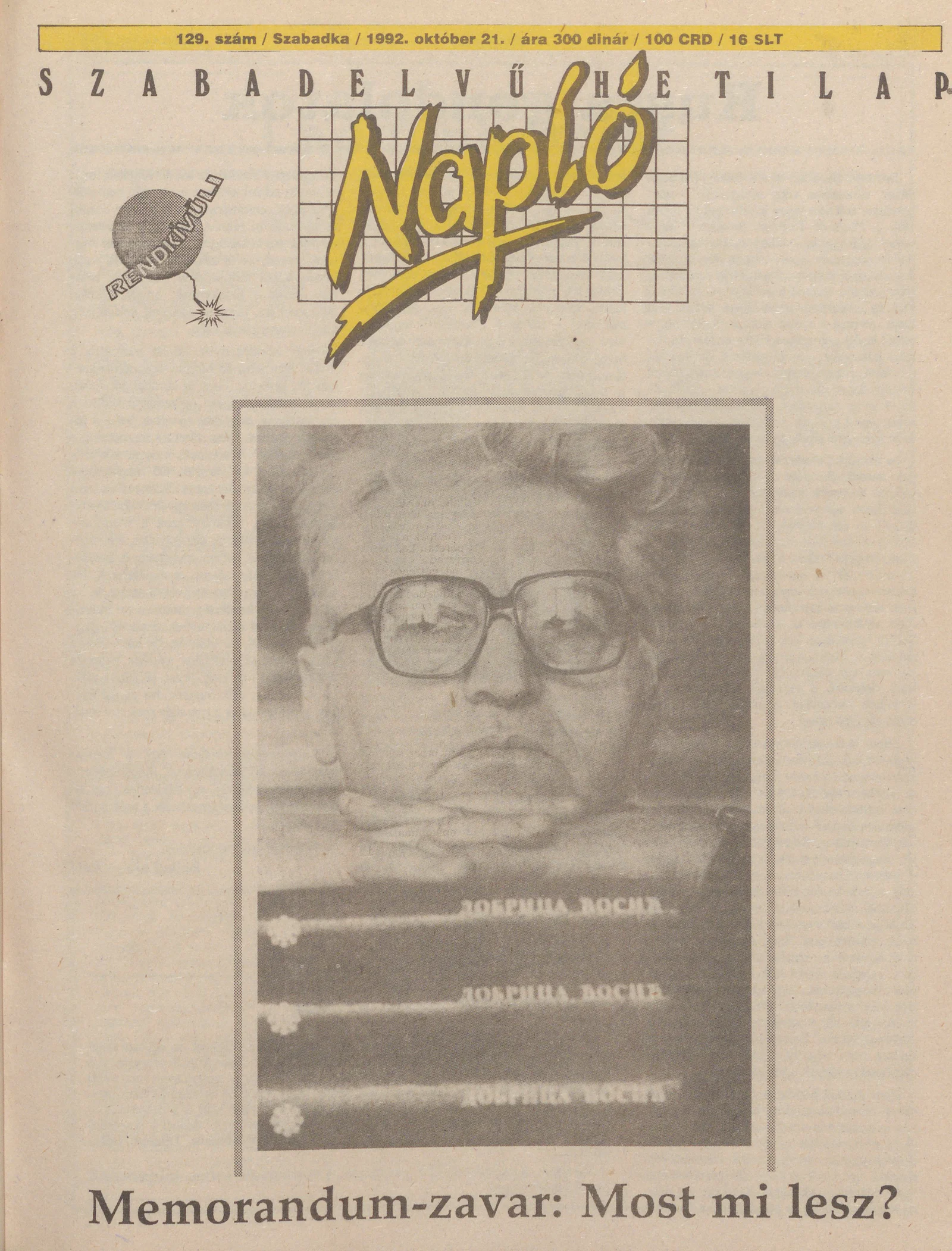 Napló - Szabadelvű hetilap, 3. évf. 1992. október 21. 129. sz.