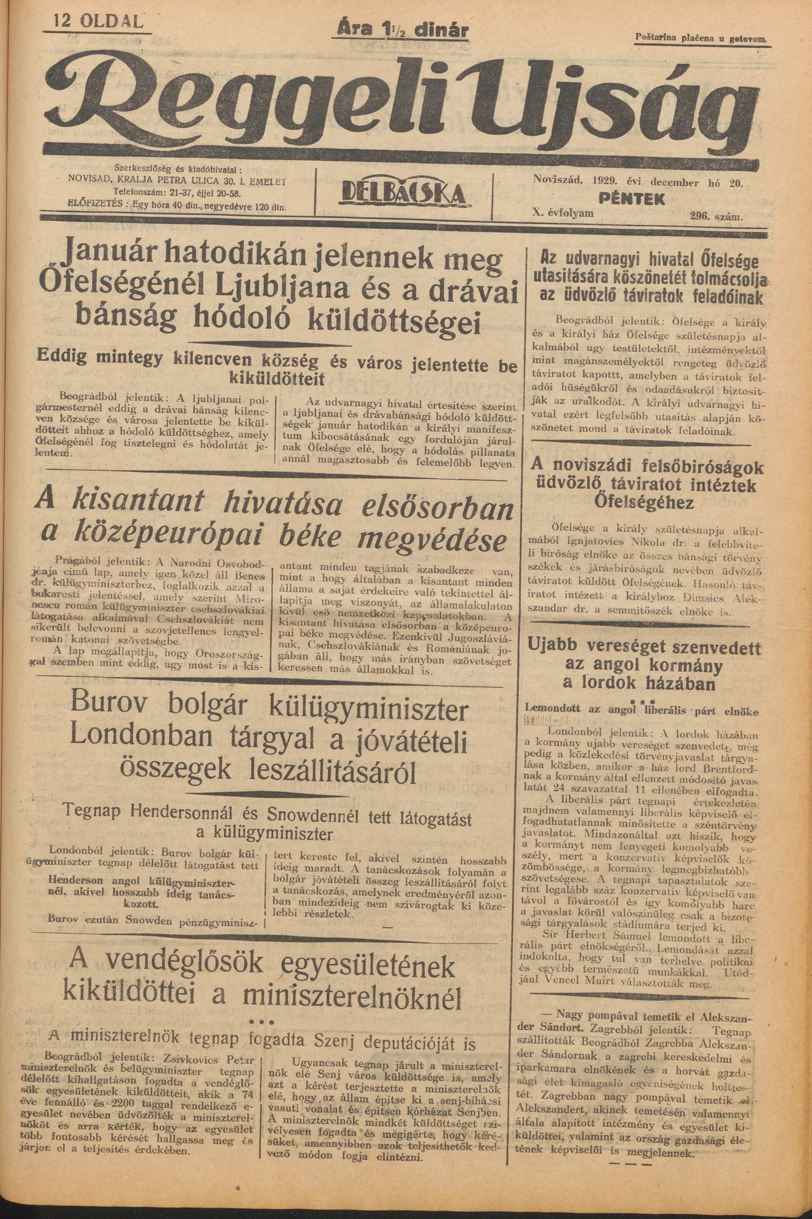 Reggeli Újság, 10. évf. 1929. december 20. 296. sz.