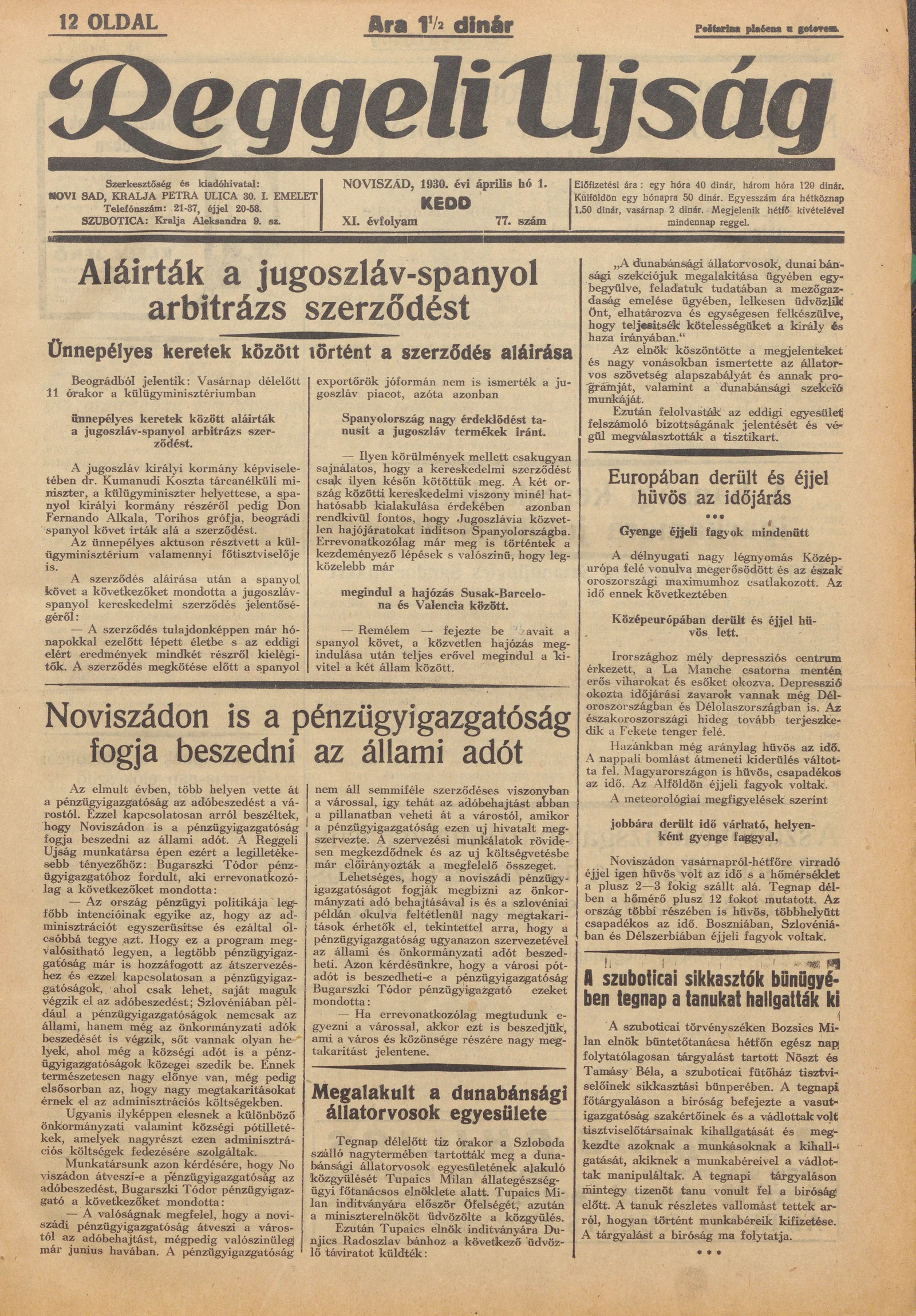 Reggeli Újság, 11. évf. 1930. április 1. 77. sz.