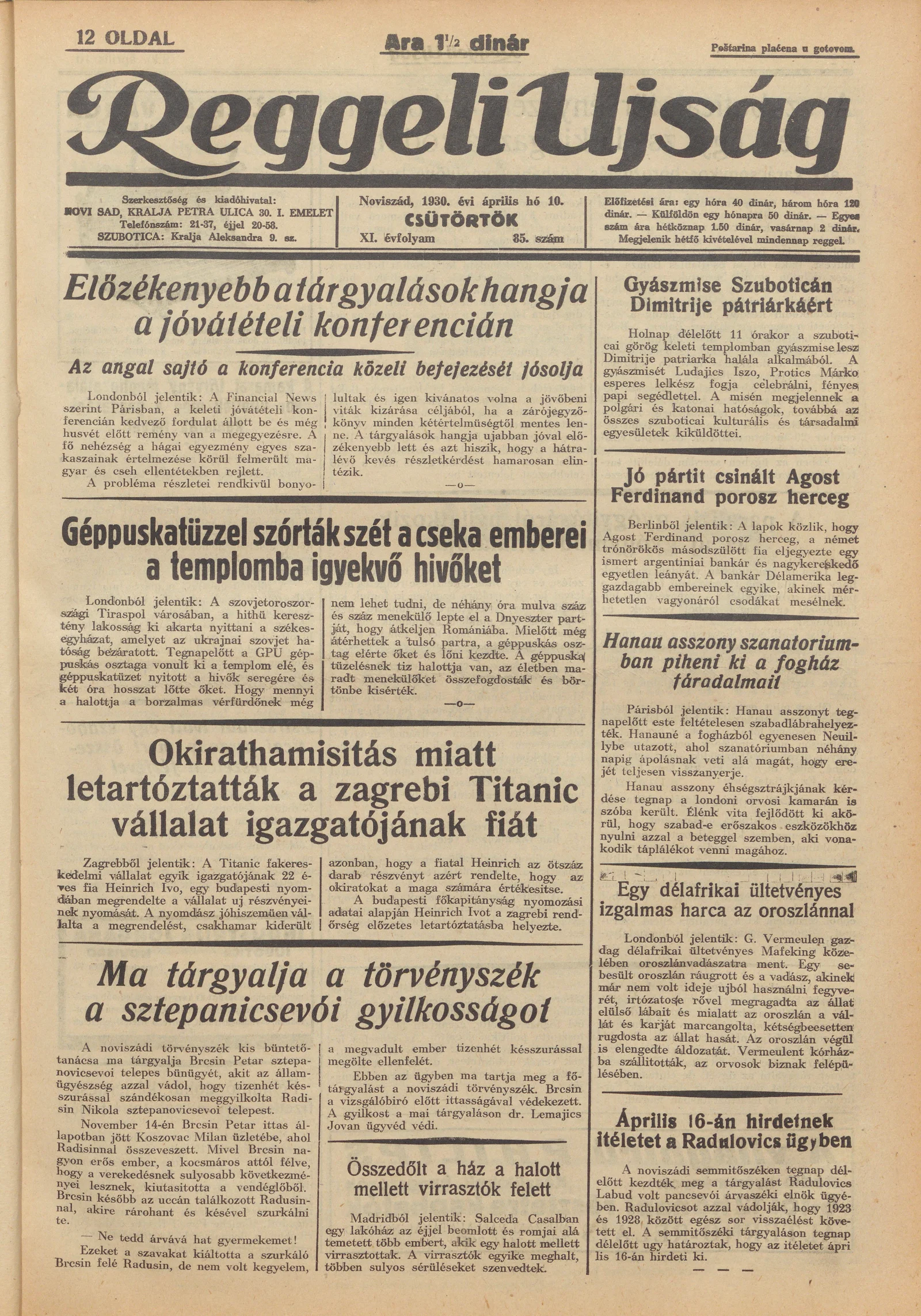 Reggeli Újság, 11. évf. 1930. április 10. 85. sz.