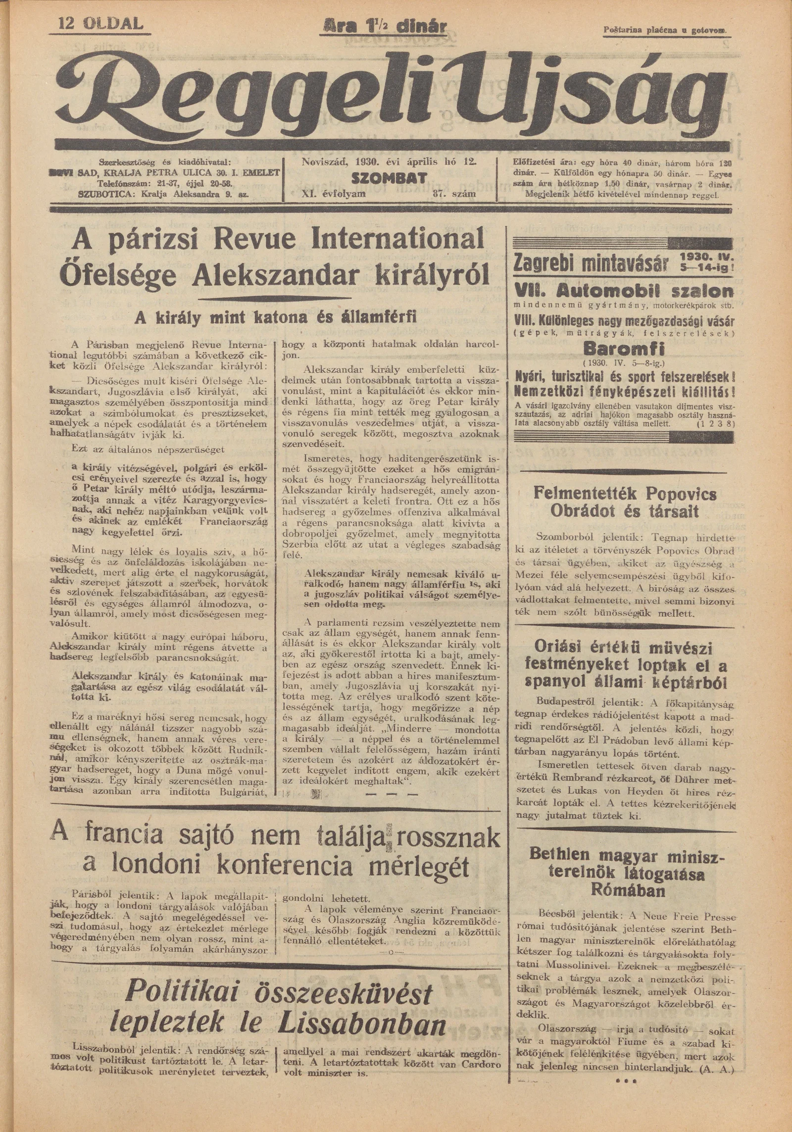 Reggeli Újság, 11. évf. 1930. április 12. 87. sz.