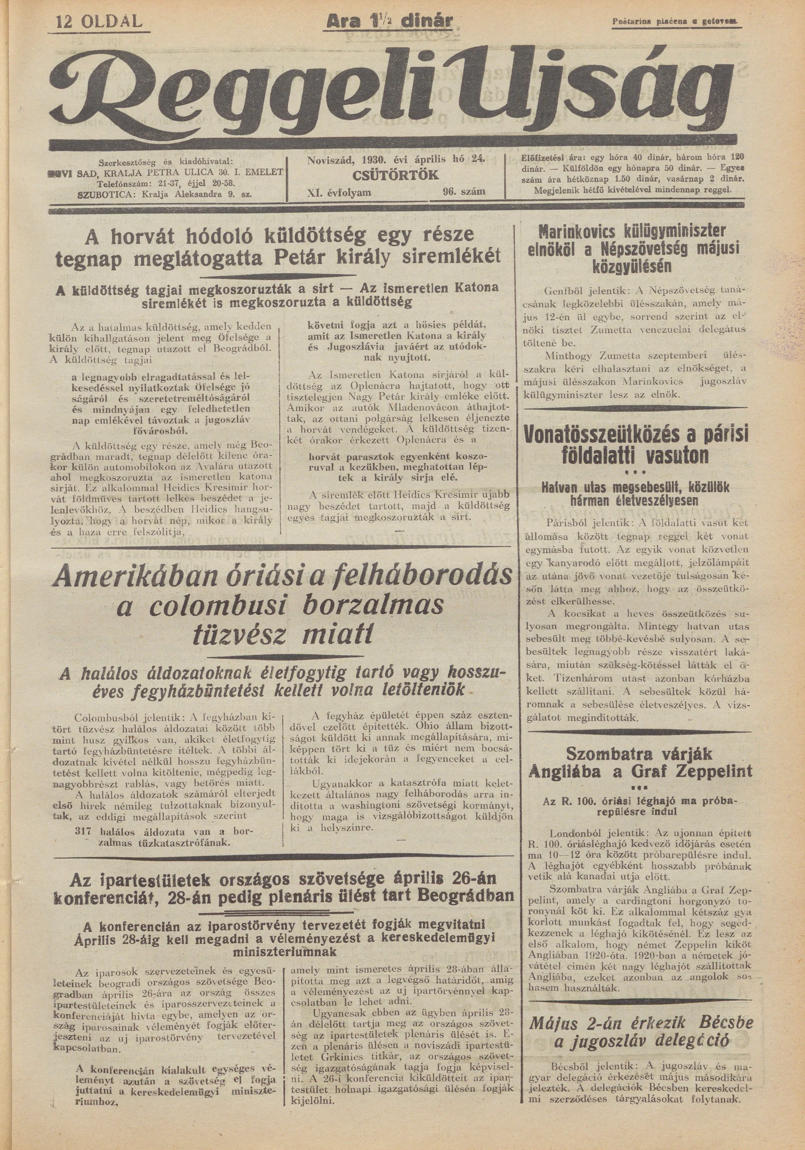 Reggeli Újság, 11. évf. 1930. április 24. 96. sz.
