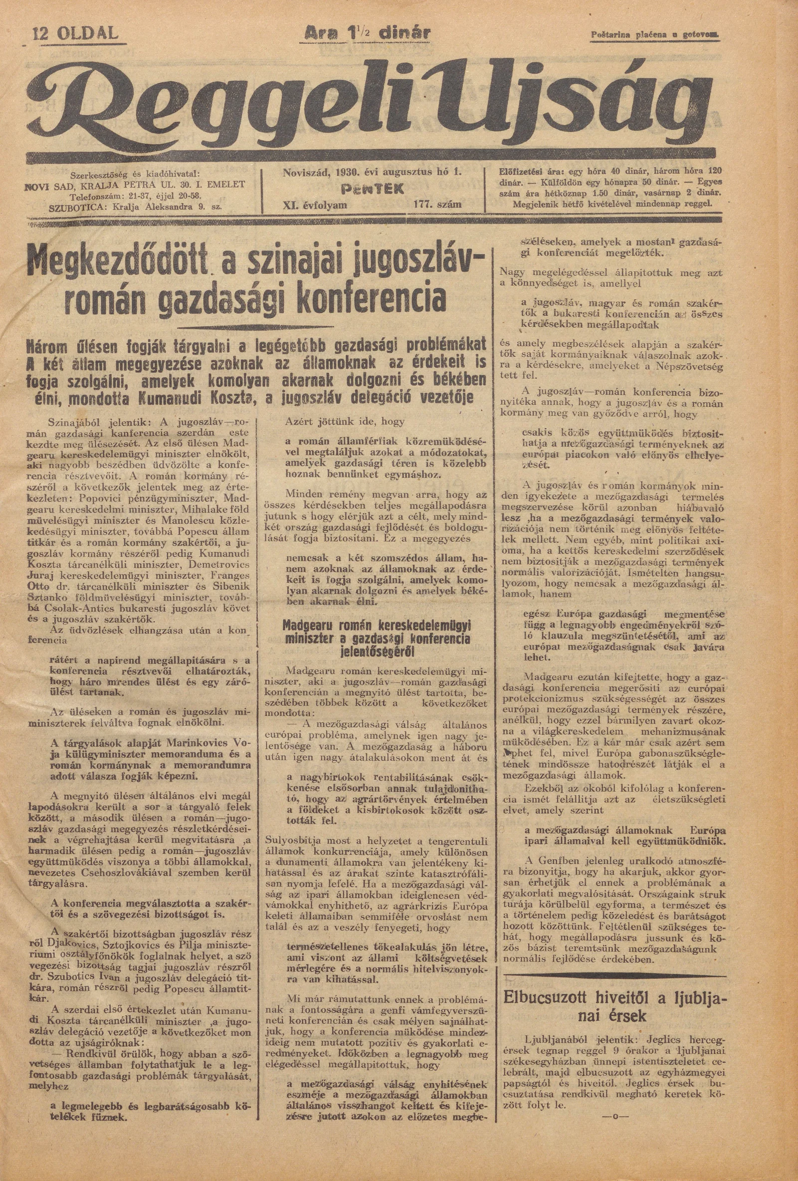 Reggeli Újság, 11. évf. 1930. augusztus 1. 177. sz.