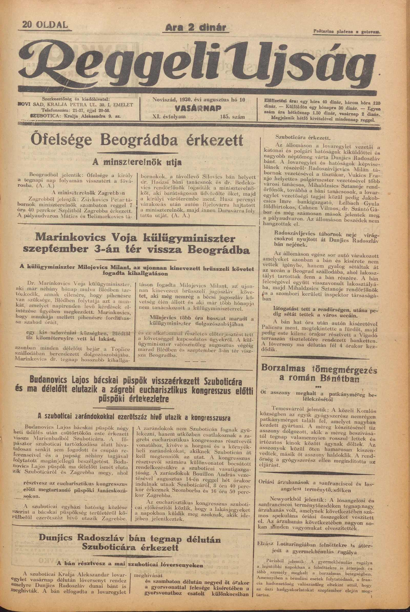 Reggeli Újság, 11. évf. 1930. augusztus 10. 185. sz.