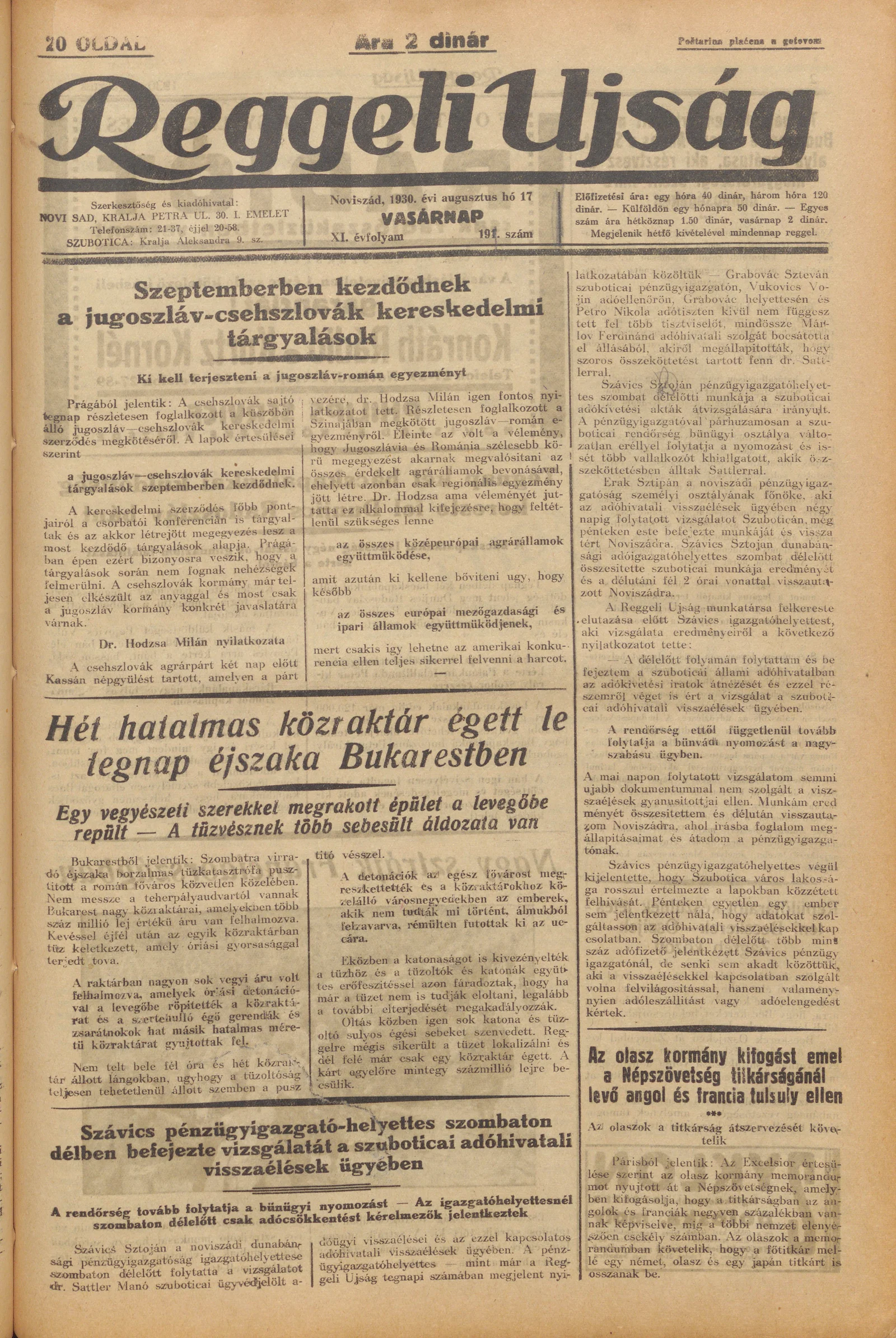 Reggeli Újság, 11. évf. 1930. augusztus 17. 191. sz.