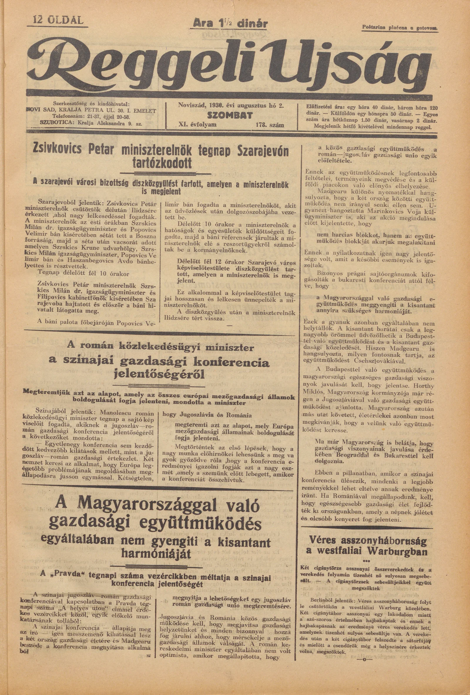 Reggeli Újság, 11. évf. 1930. augusztus 2. 178. sz.