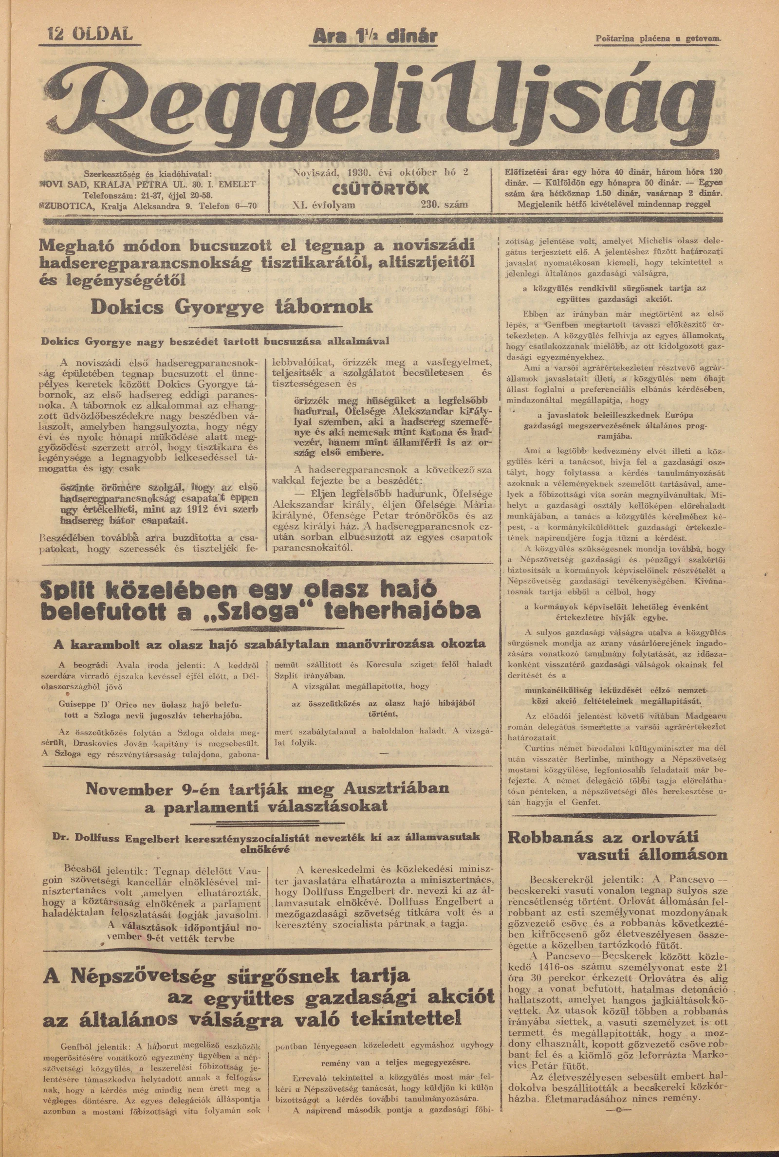 Reggeli Újság, 11. évf. 1930. augusztus 2. 230. sz.