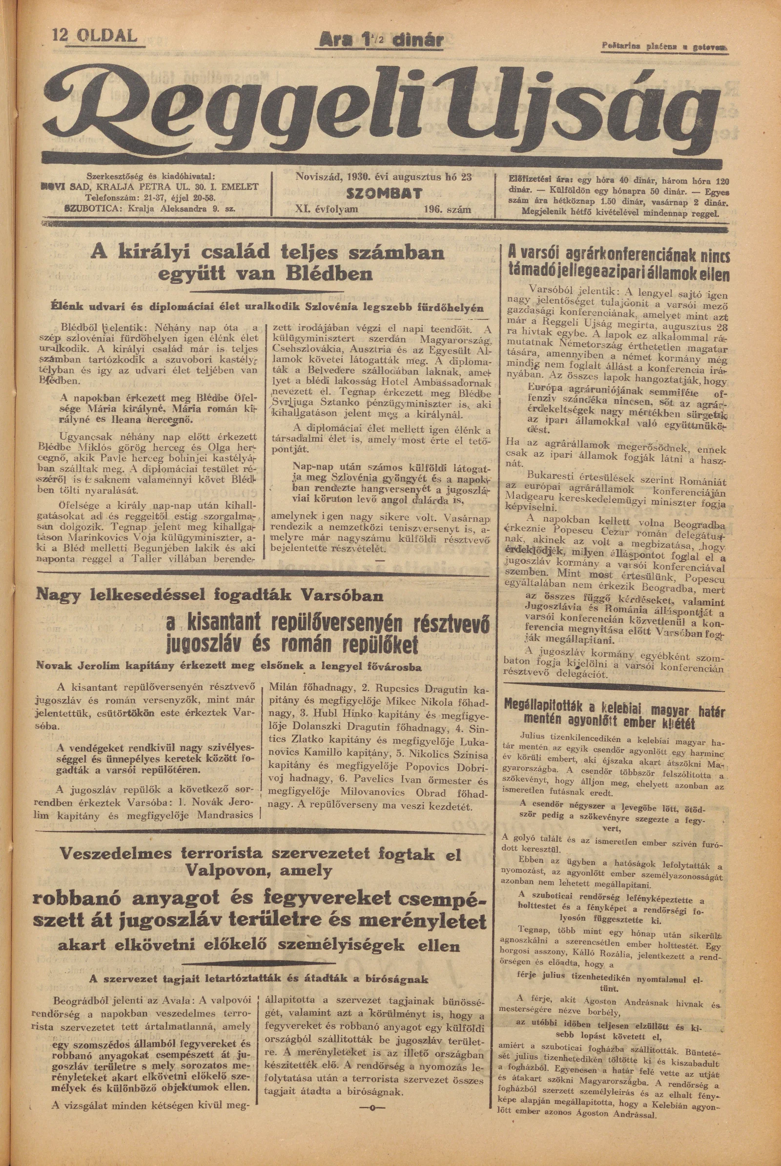 Reggeli Újság, 11. évf. 1930. augusztus 23. 196. sz.