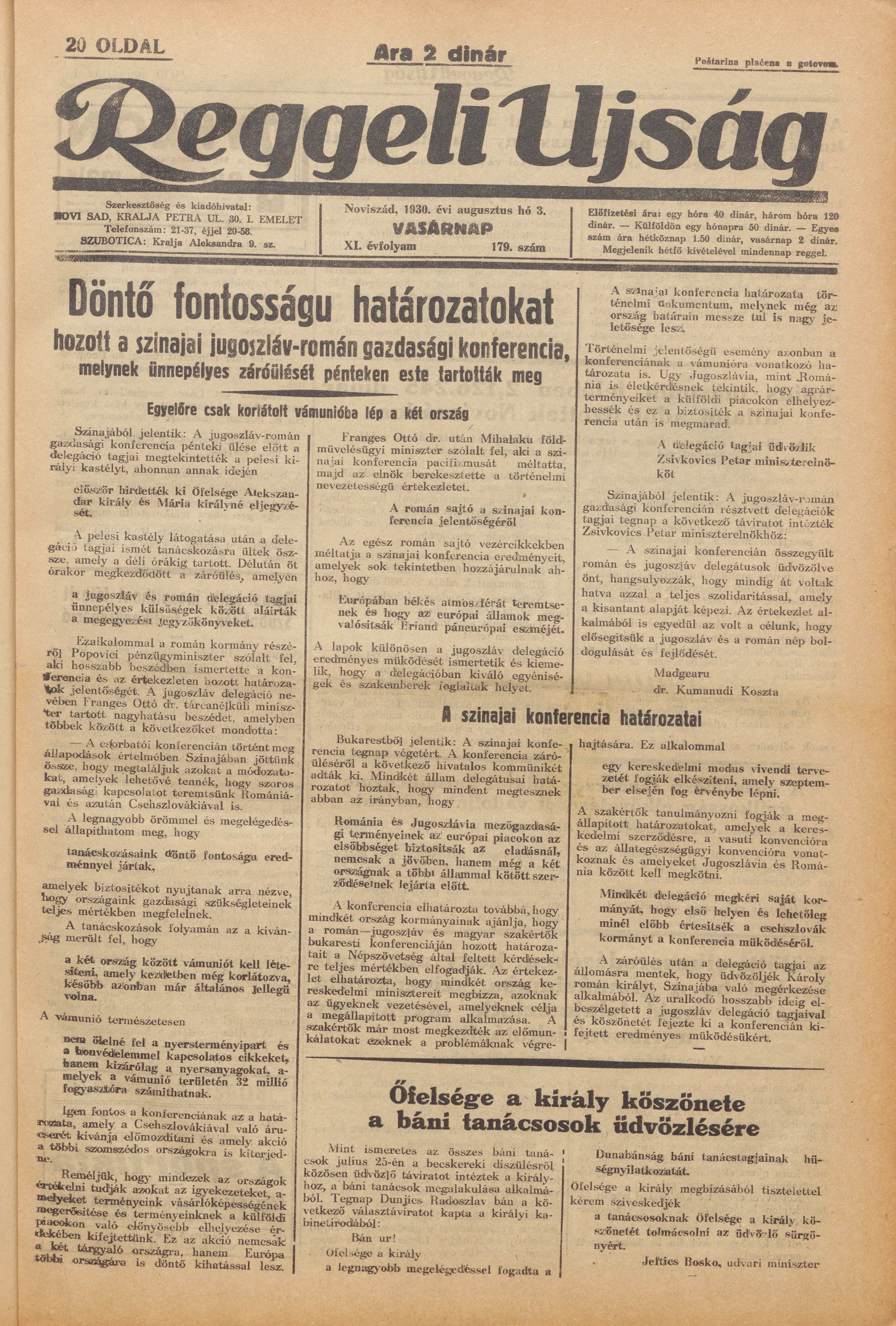 Reggeli Újság, 11. évf. 1930. augusztus 3. 178. sz.