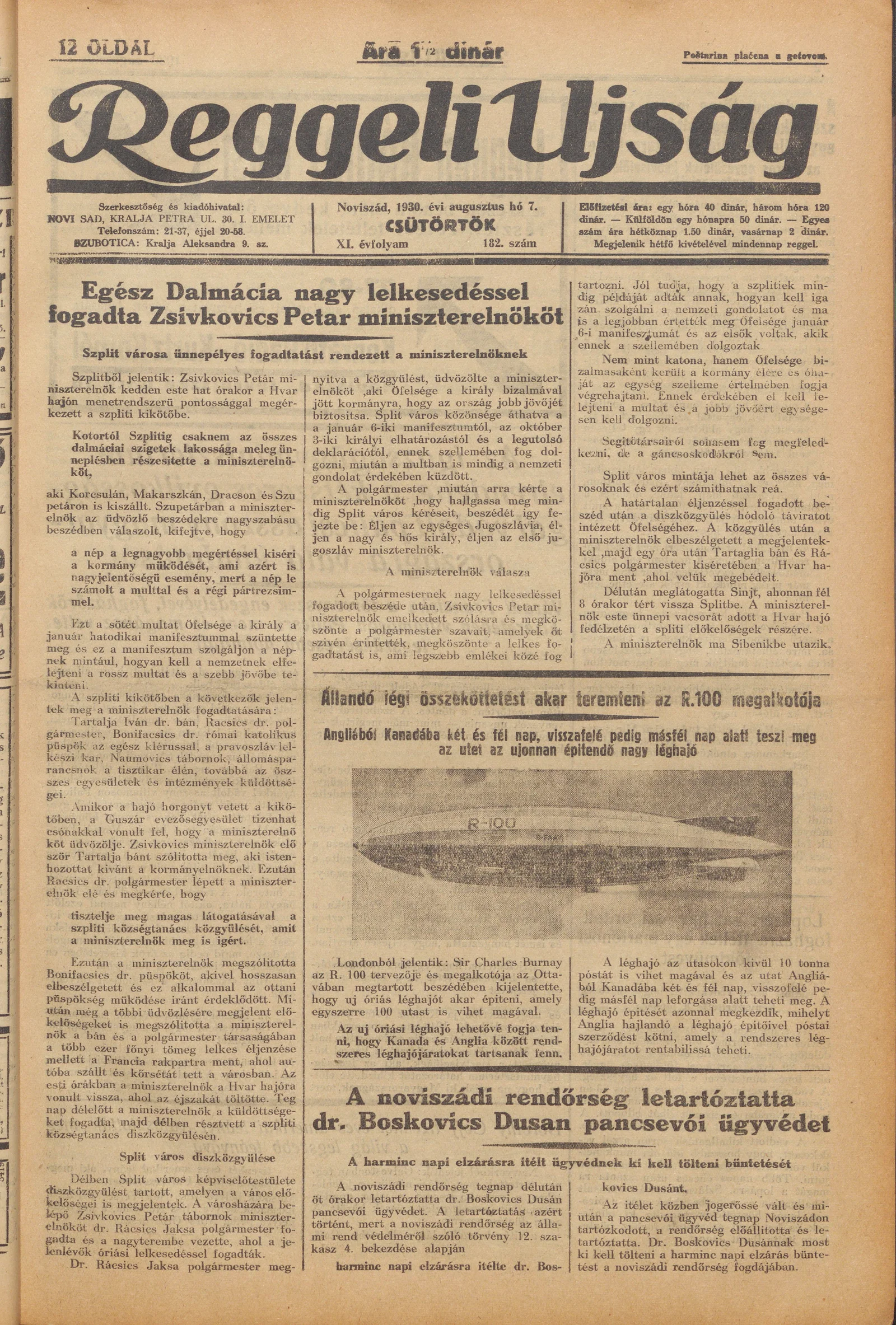 Reggeli Újság, 11. évf. 1930. augusztus 7. 182. sz.