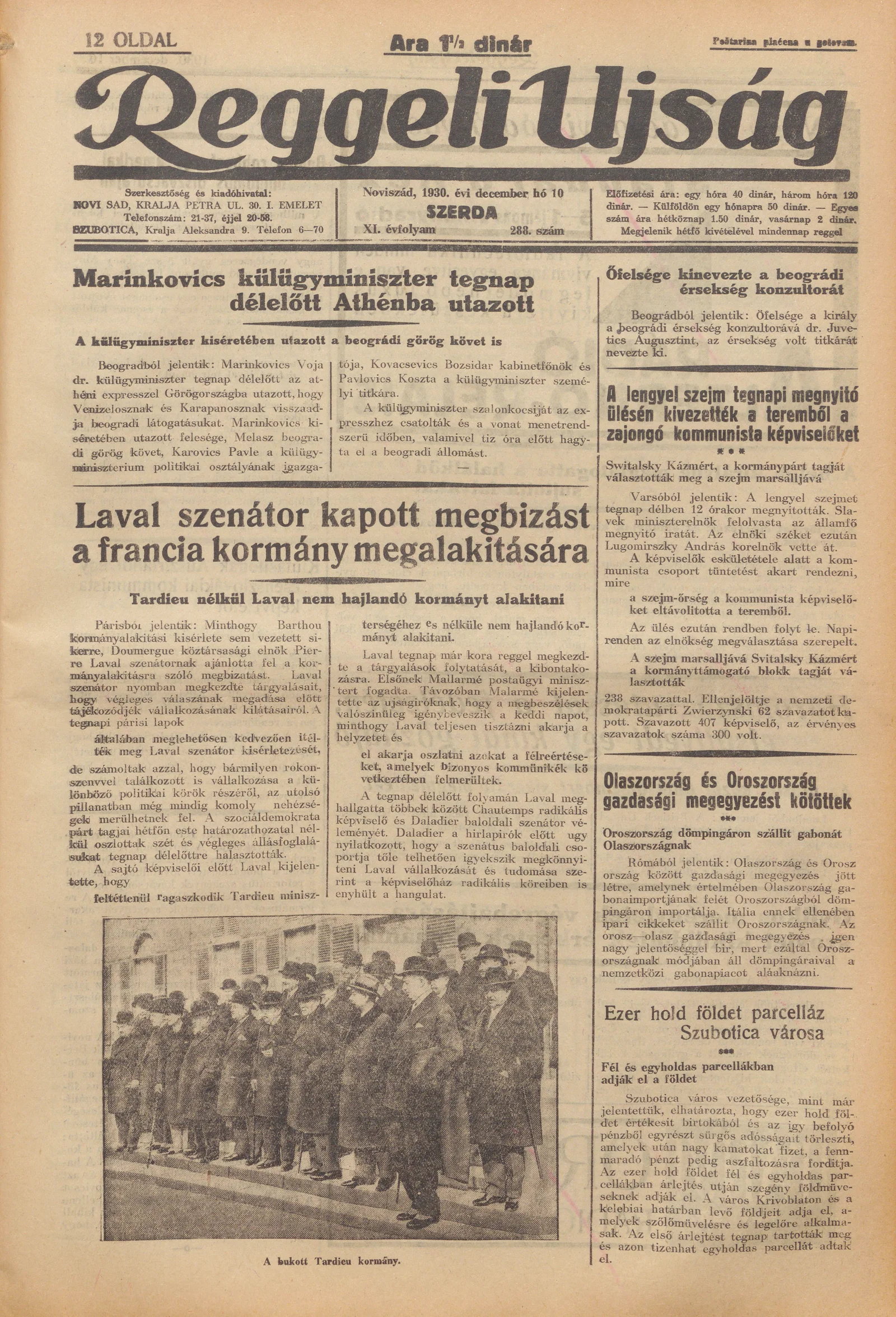 Reggeli Újság, 11. évf. 1930. december 10. 288. sz.
