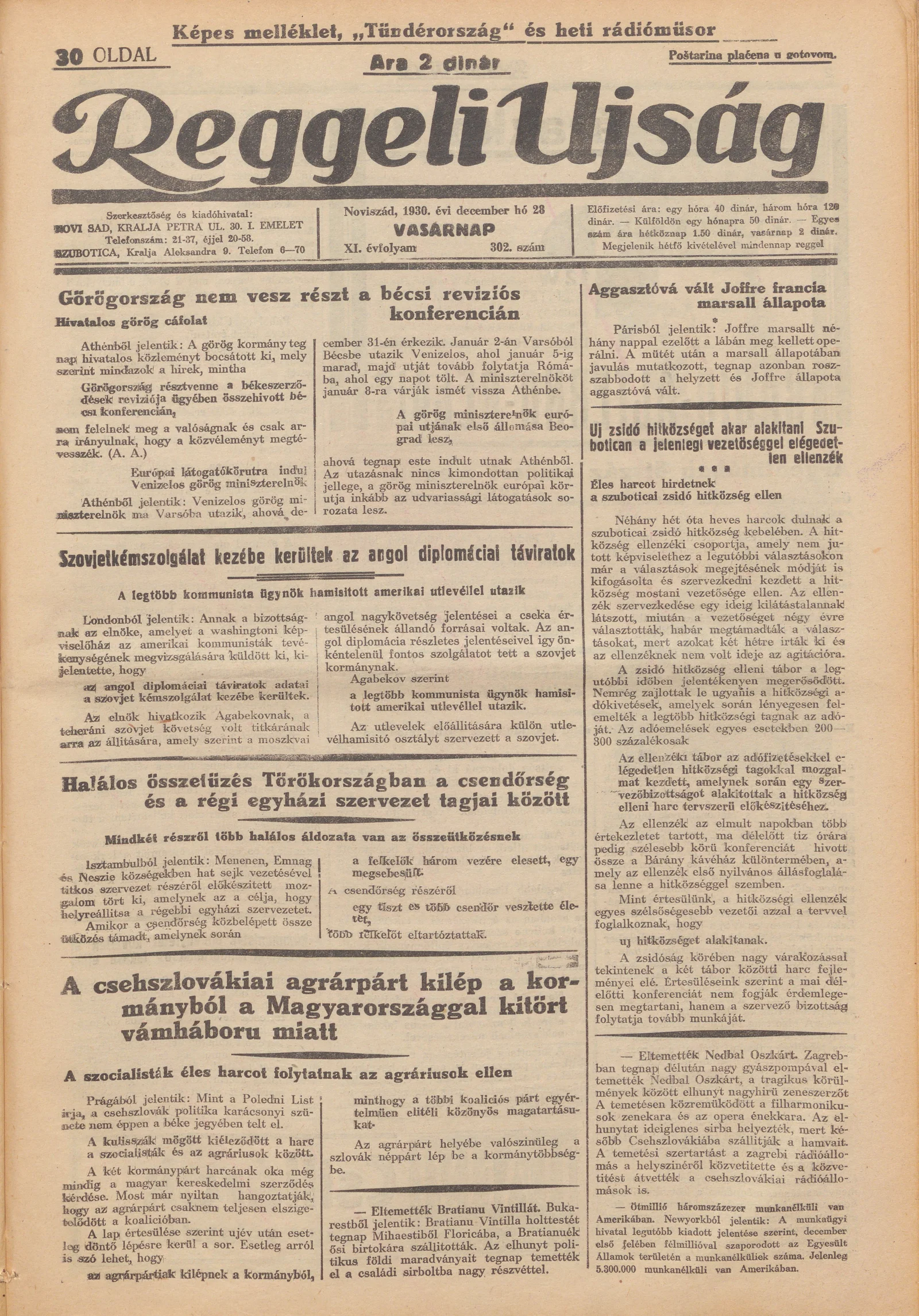 Reggeli Újság, 11. évf. 1930. december 28. 302. sz.
