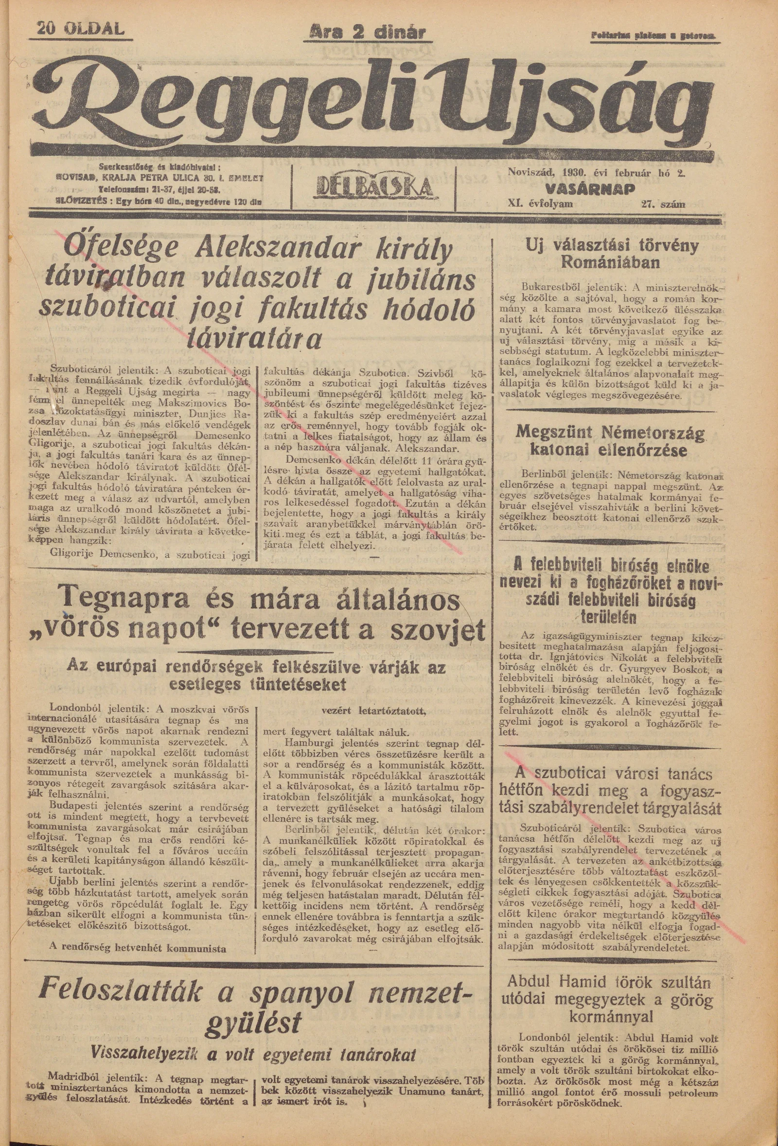 Reggeli Újság, 11. évf. 1930. február 2. 27. sz.