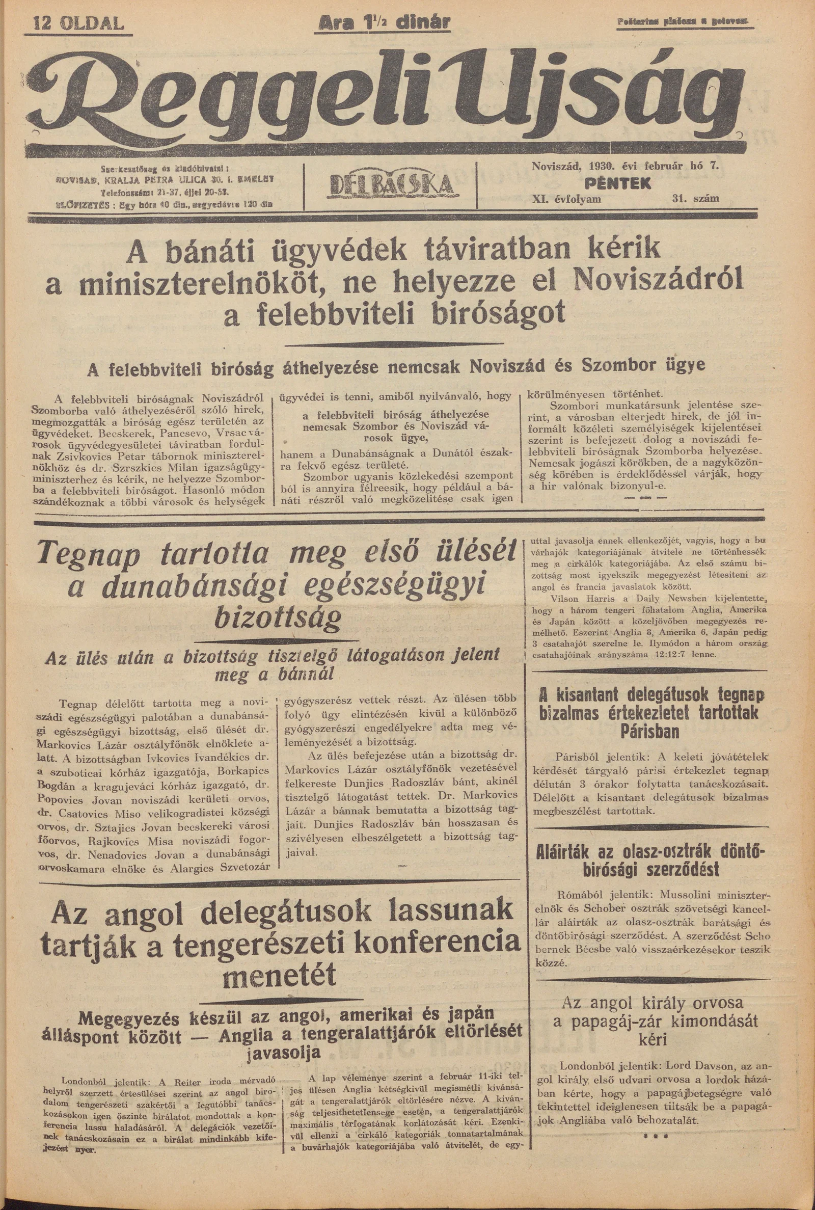 Reggeli Újság, 11. évf. 1930. február 7. 31. sz.