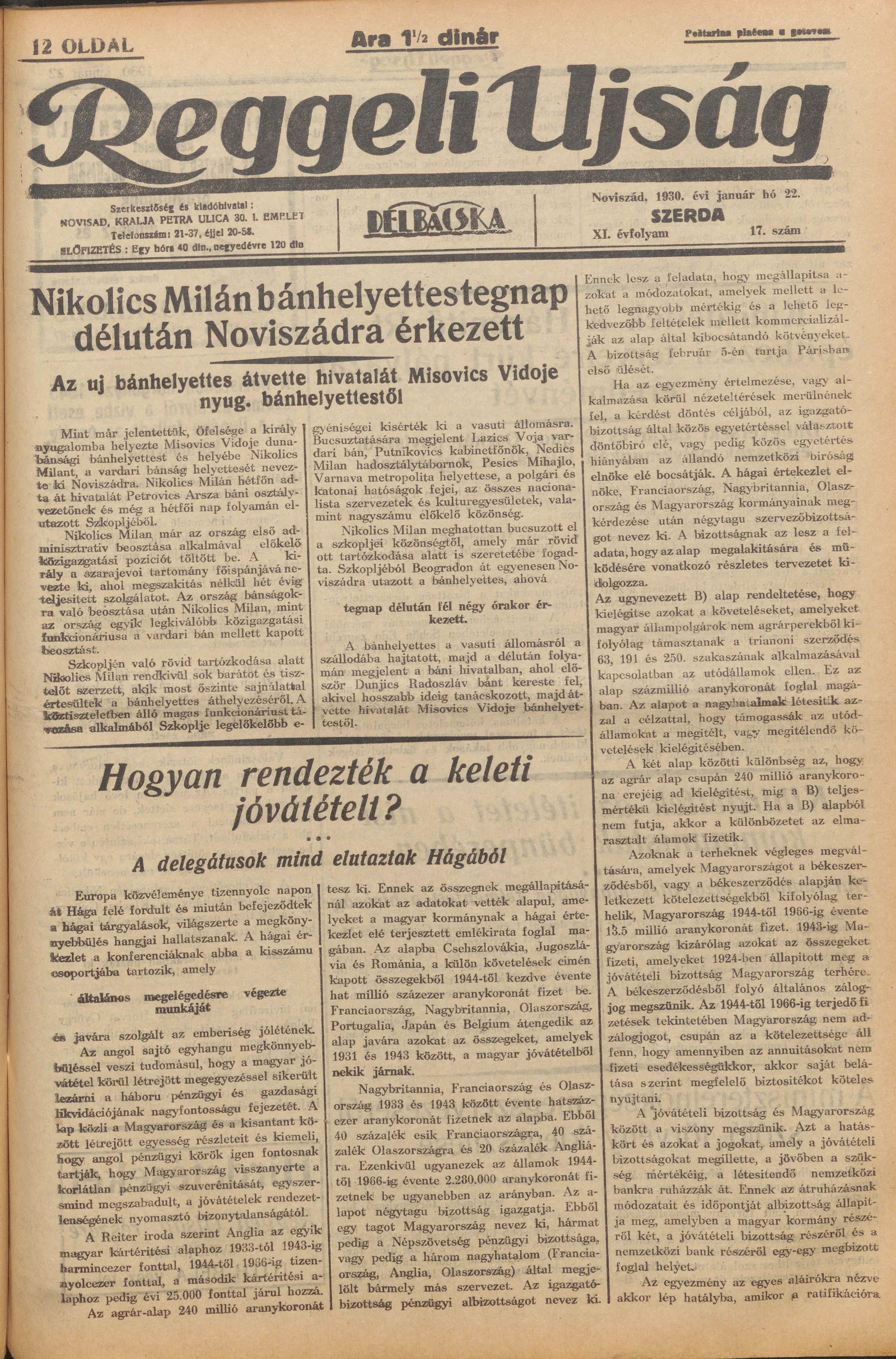 Reggeli Újság, 11. évf. 1930. január 22. 17. sz.