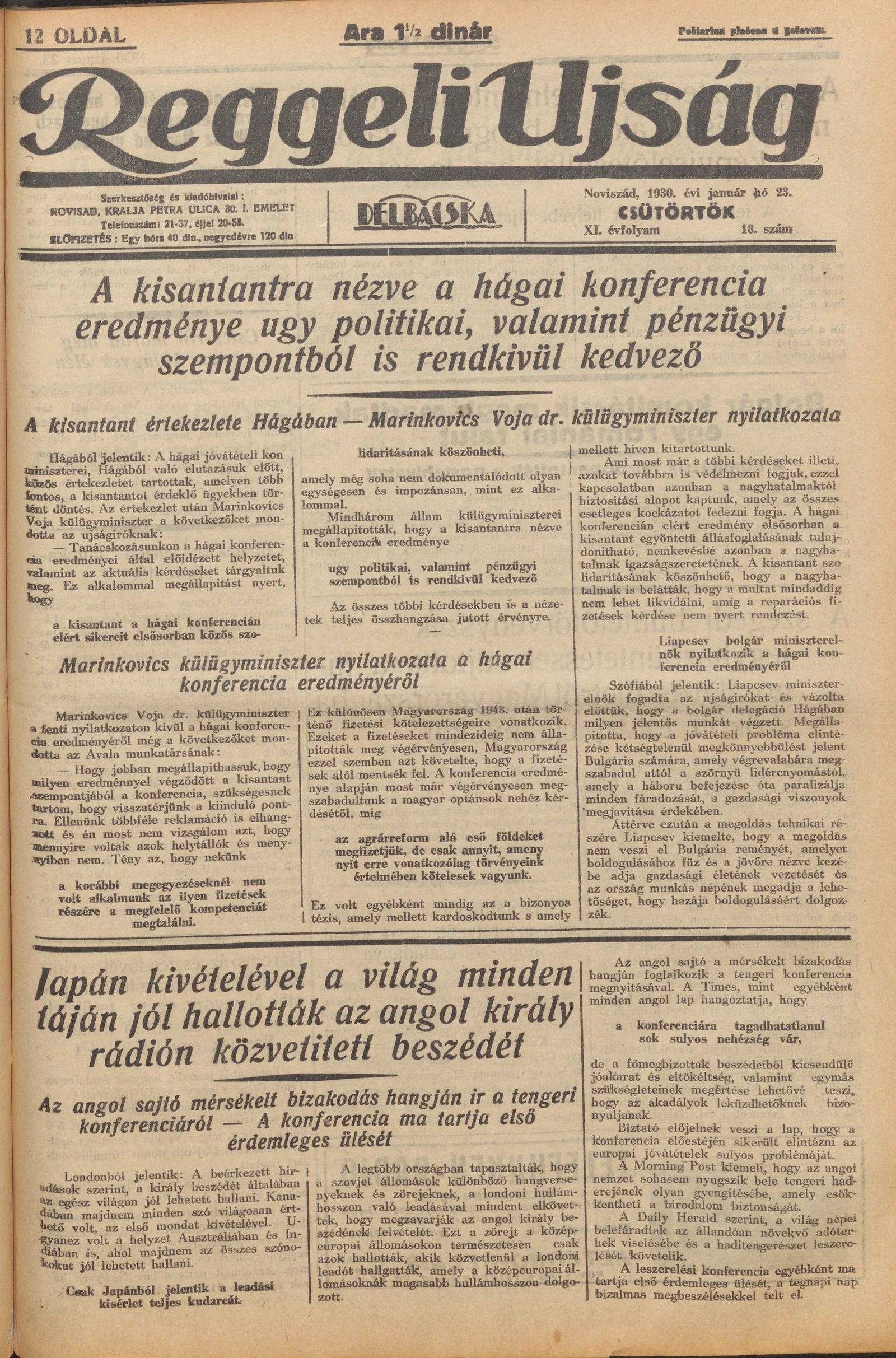 Reggeli Újság, 11. évf. 1930. január 23. 18. sz.