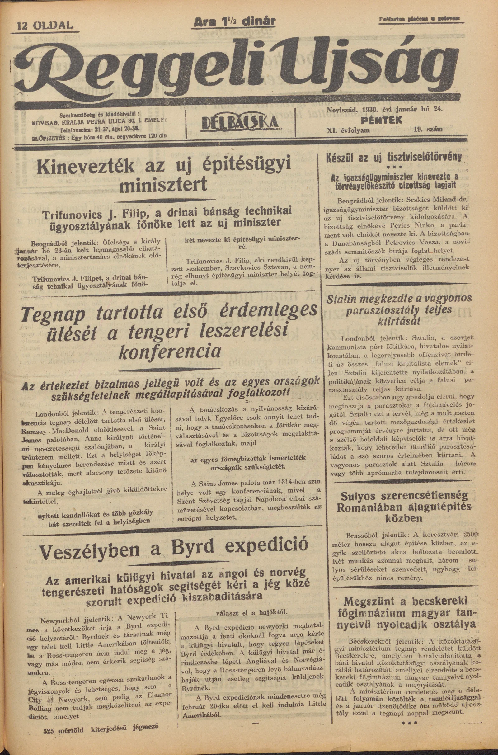 Reggeli Újság, 11. évf. 1930. január 24. 19. sz.