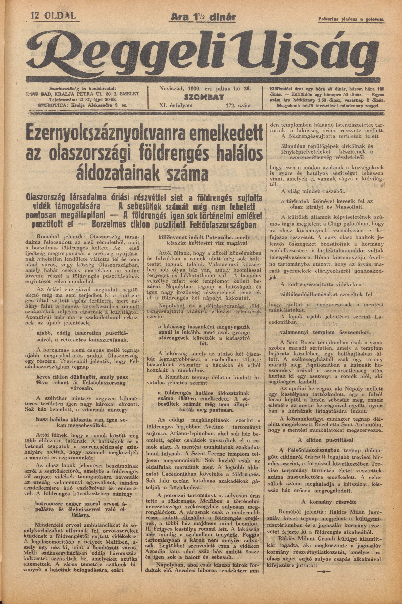 Reggeli Újság, 11. évf. 1930. július 26. 172. sz.