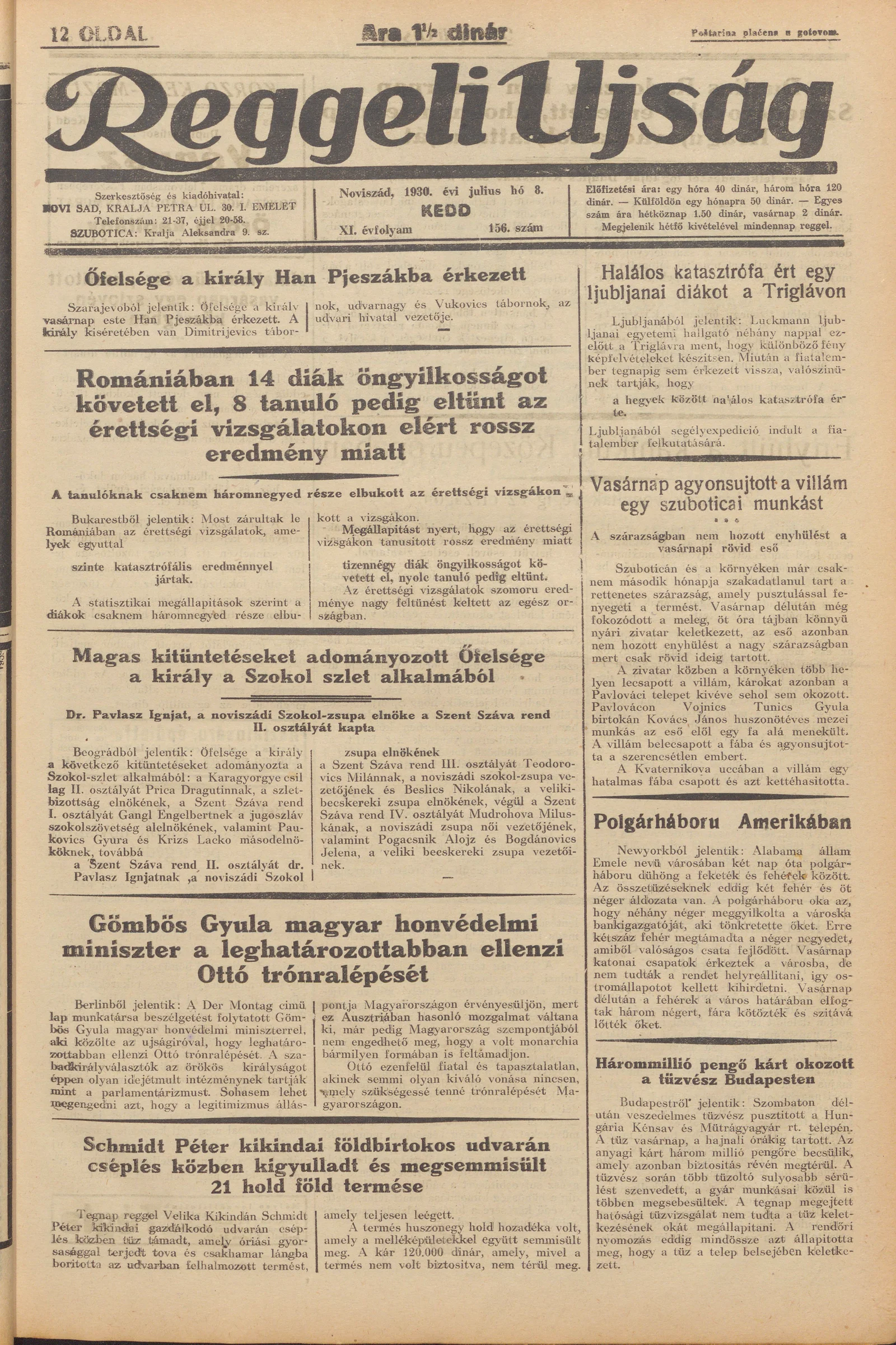 Reggeli Újság, 11. évf. 1930. július 8. 156. sz.