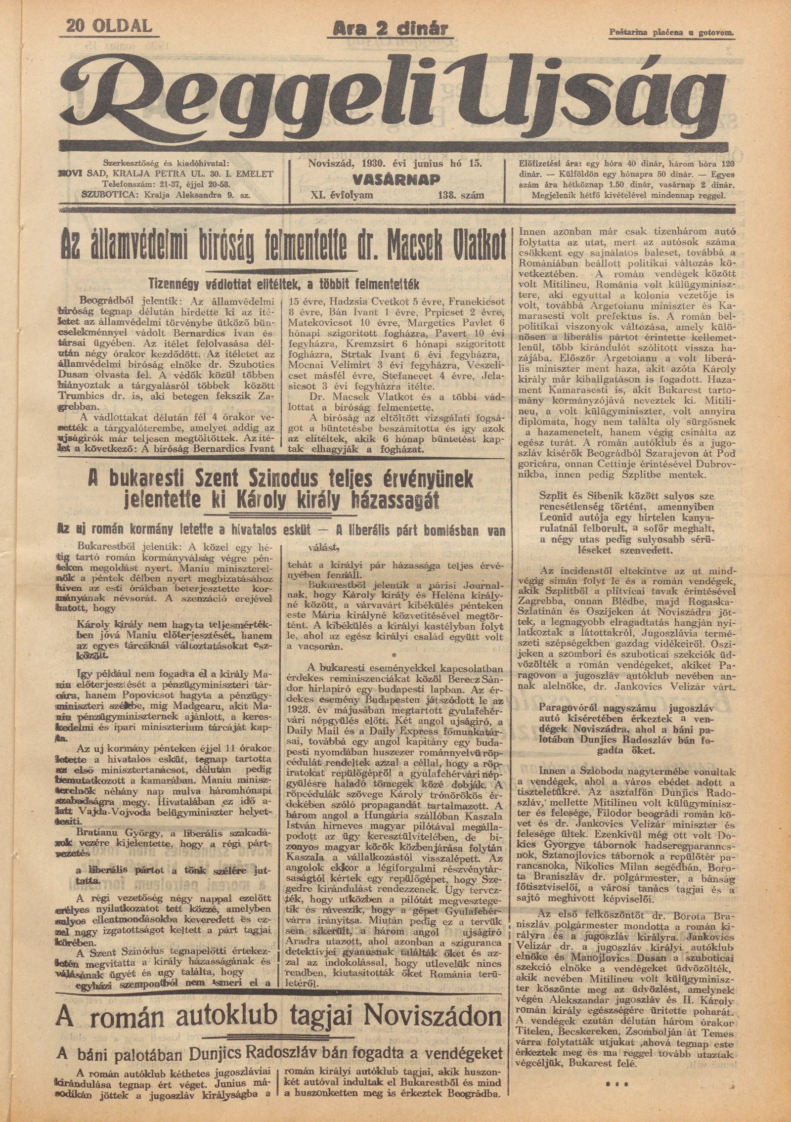 Reggeli Újság, 11. évf. 1930. június 15. 138. sz.