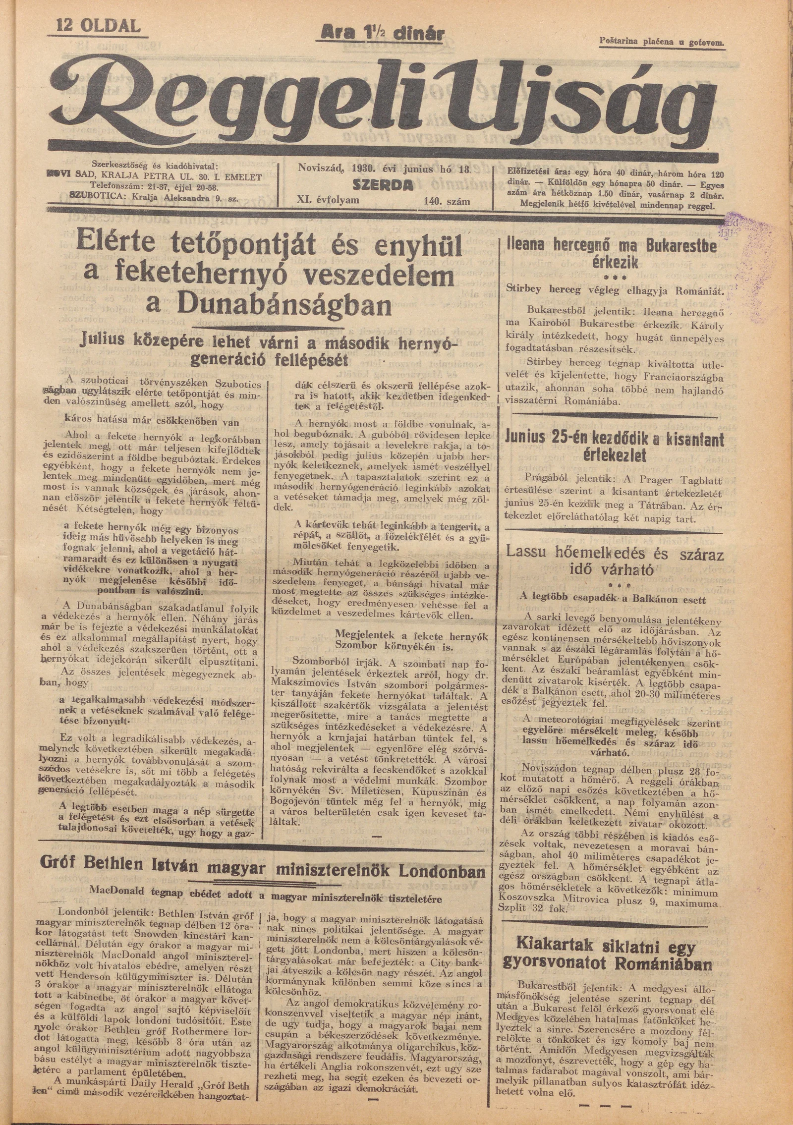 Reggeli Újság, 11. évf. 1930. június 18. 140. sz.