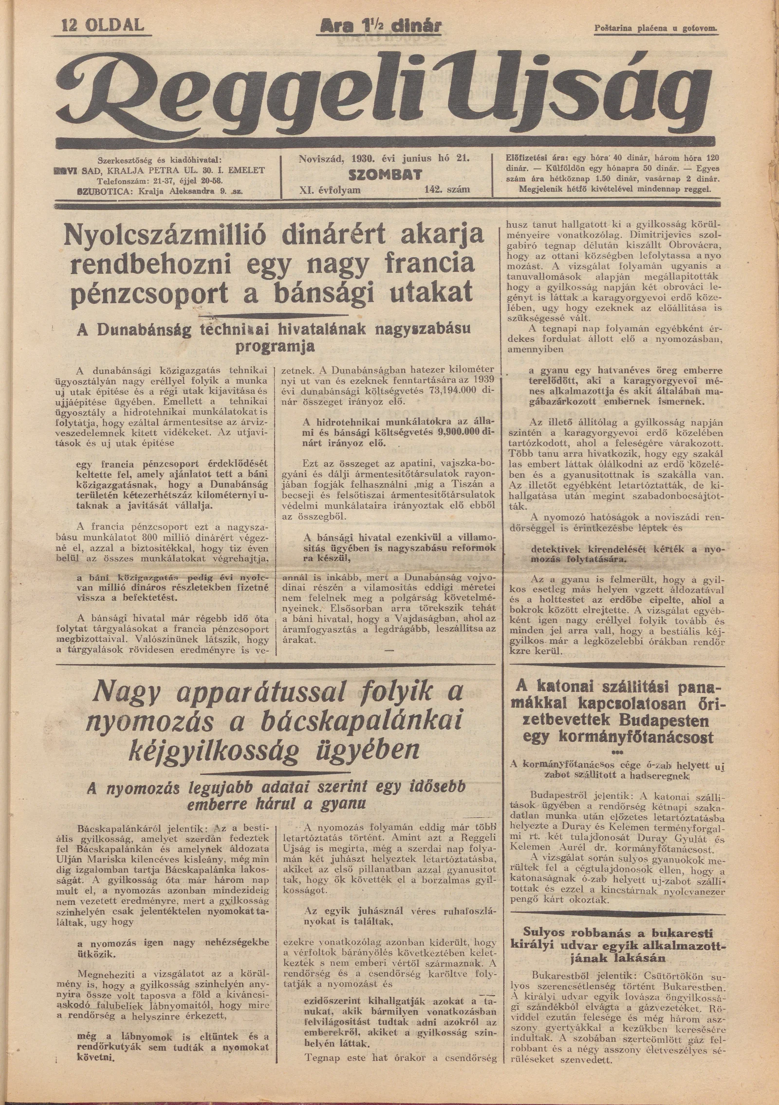 Reggeli Újság, 11. évf. 1930. június 21. 142. sz.