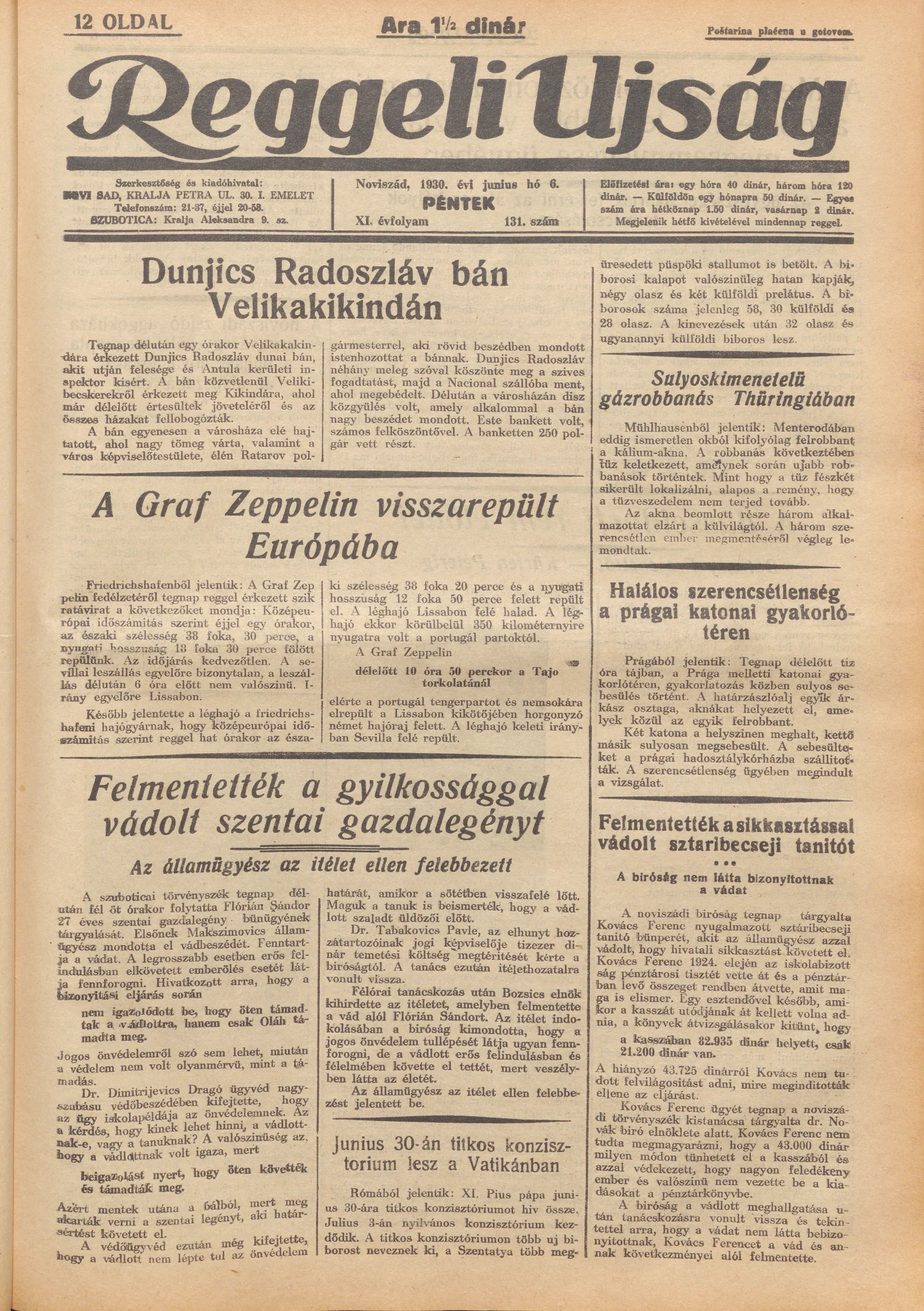 Reggeli Újság, 11. évf. 1930. június 6. 131. sz.