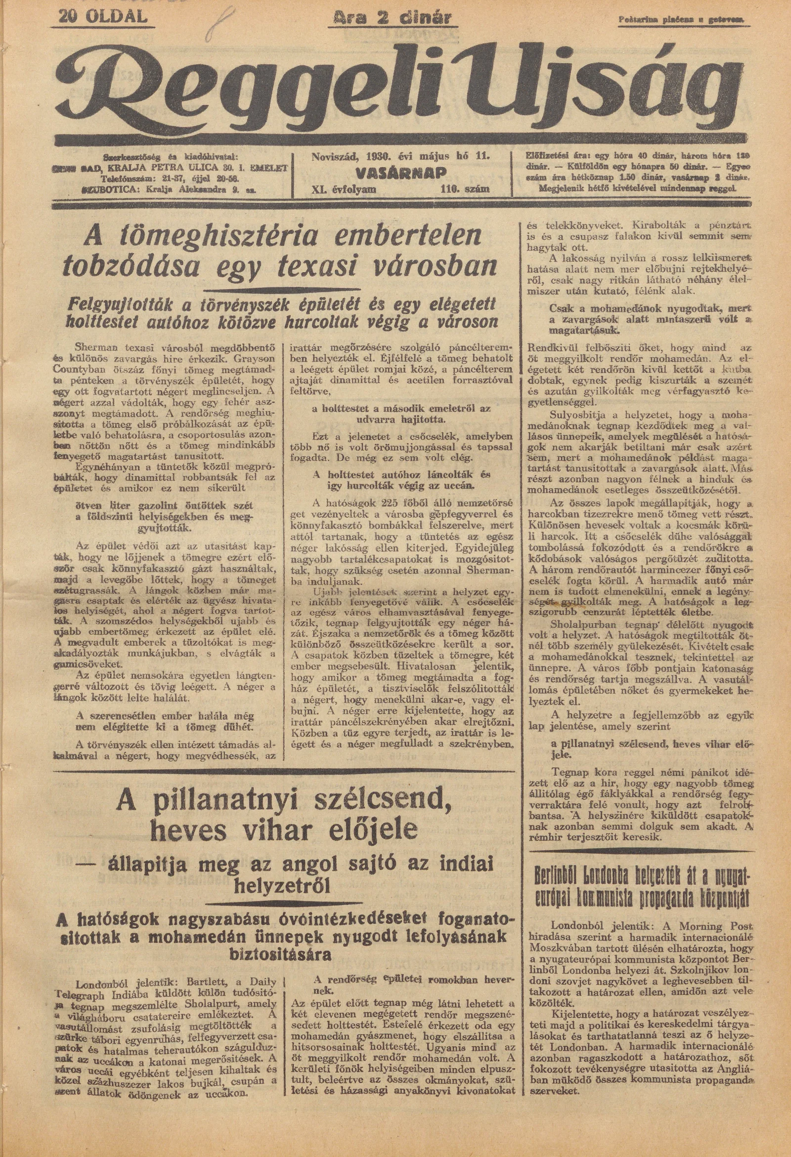 Reggeli Újság, 11. évf. 1930. május 11. 110. sz.