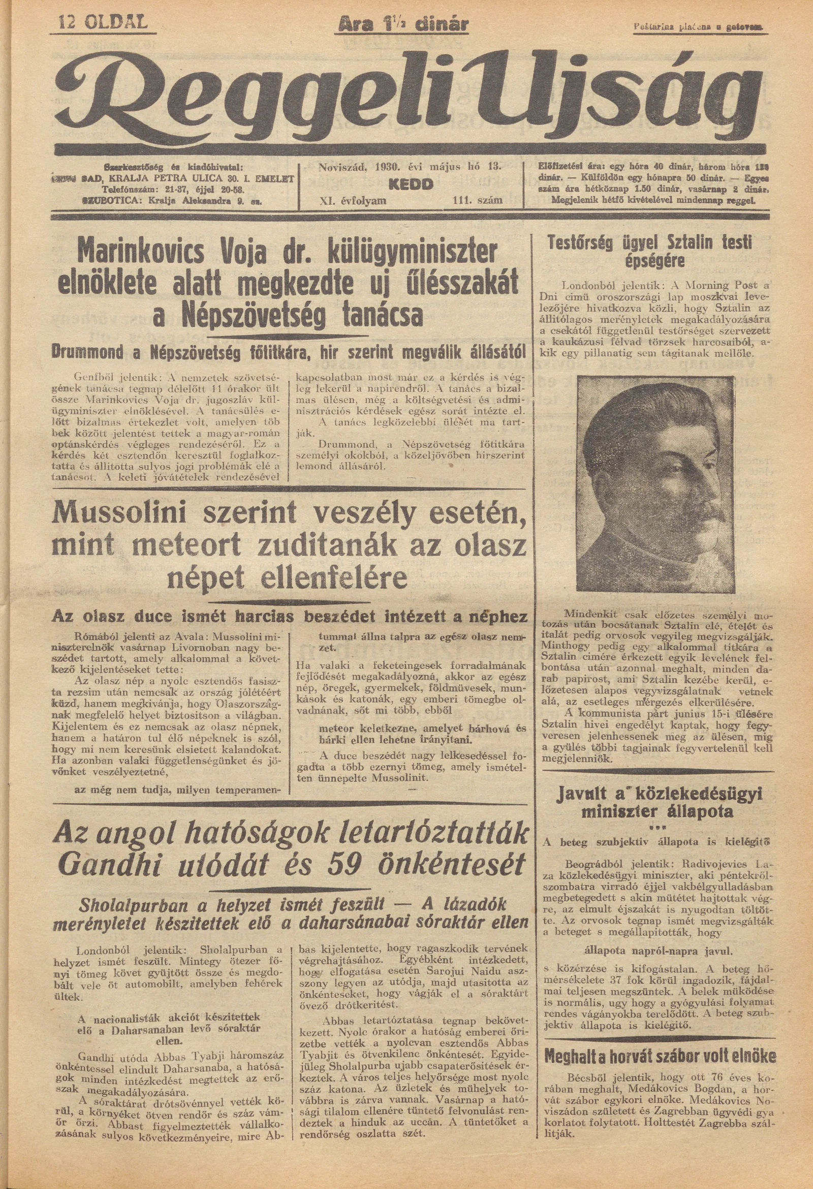 Reggeli Újság, 11. évf. 1930. május 13. 111. sz.