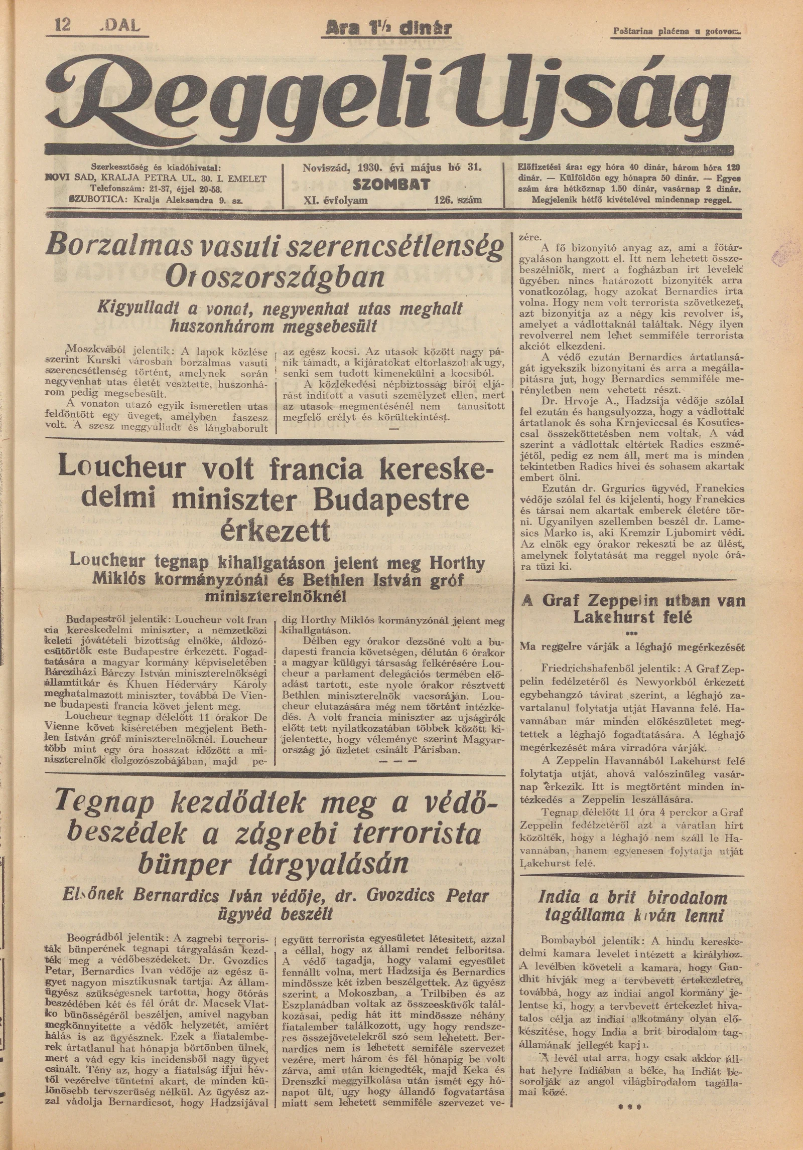 Reggeli Újság, 11. évf. 1930. május 31. 126. sz.