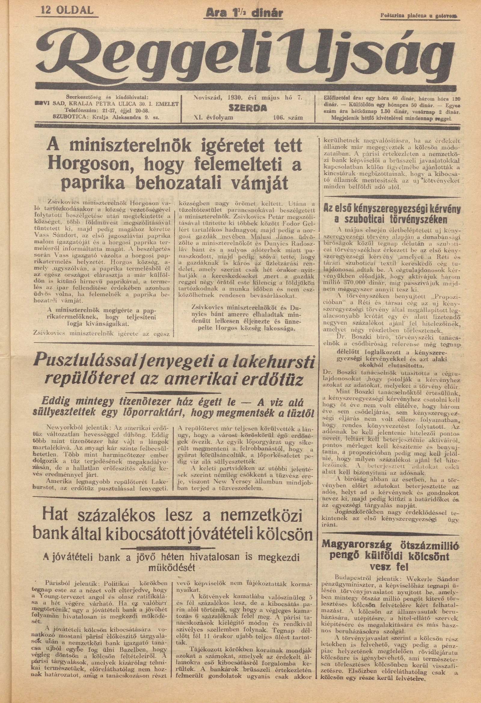 Reggeli Újság, 11. évf. 1930. május 7. 106. sz.