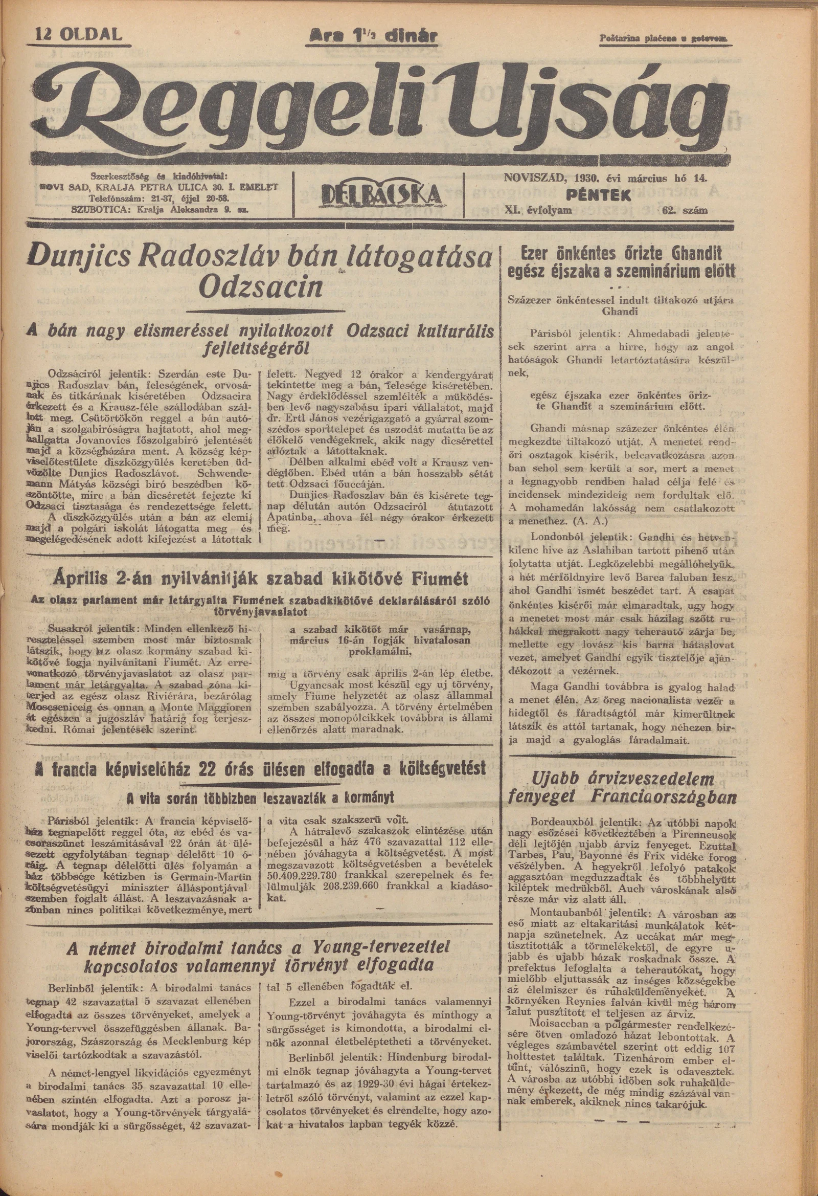 Reggeli Újság, 11. évf. 1930. március 14. 62. sz.