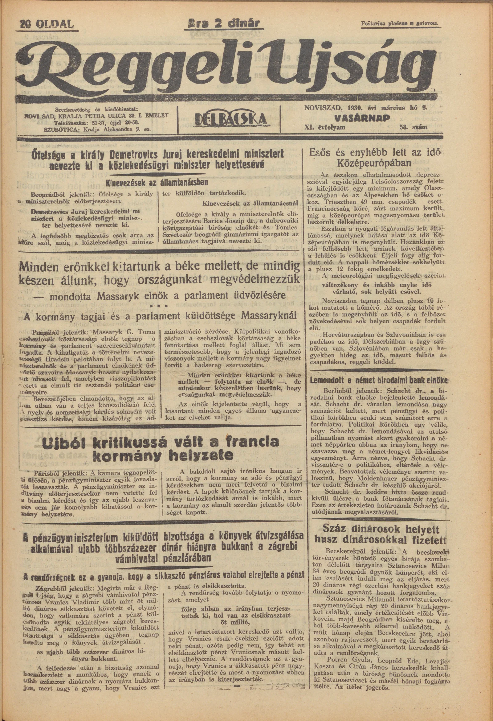 Reggeli Újság, 11. évf. 1930. március 9. 58. sz.