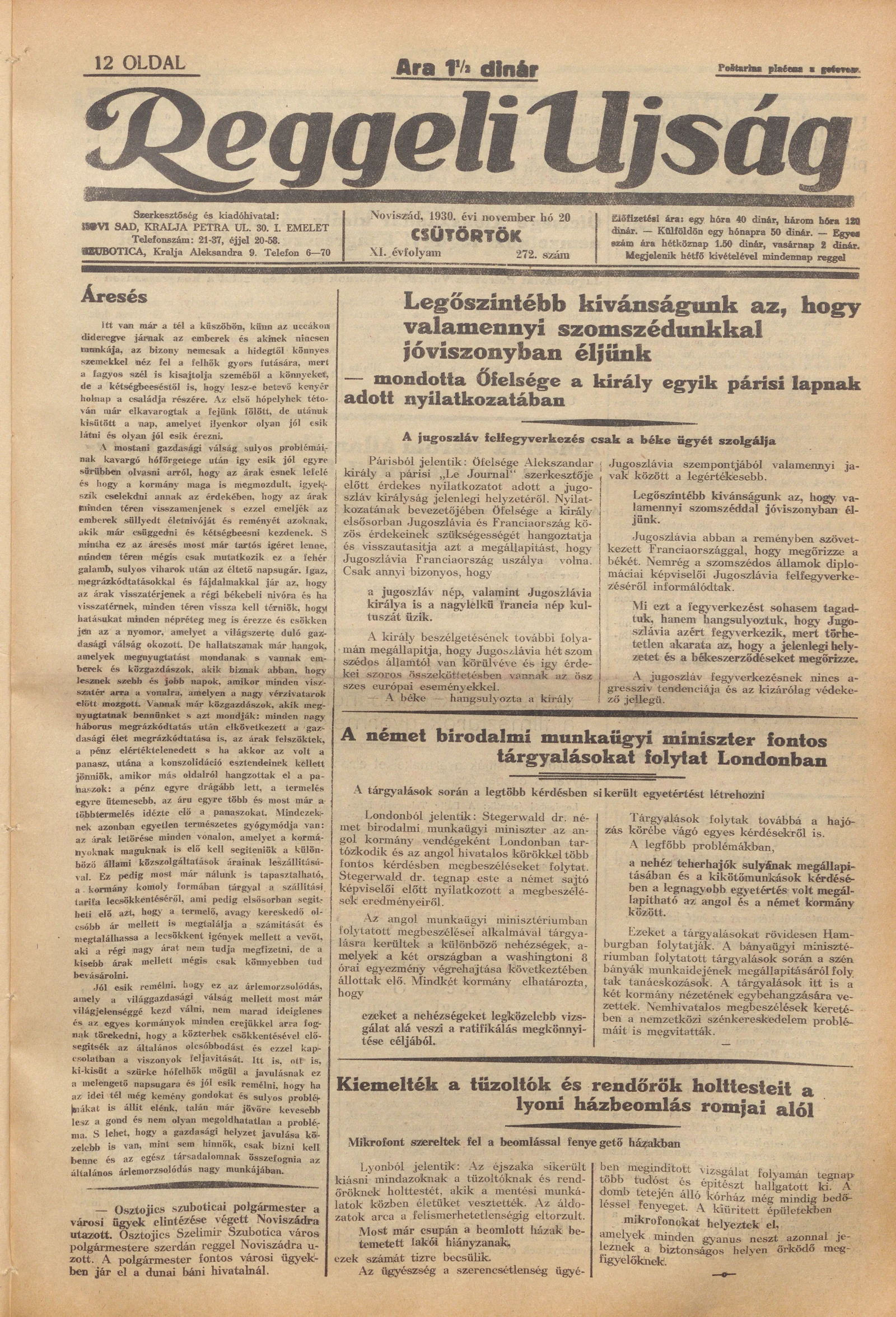 Reggeli Újság, 11. évf. 1930. november 20. 272. sz.