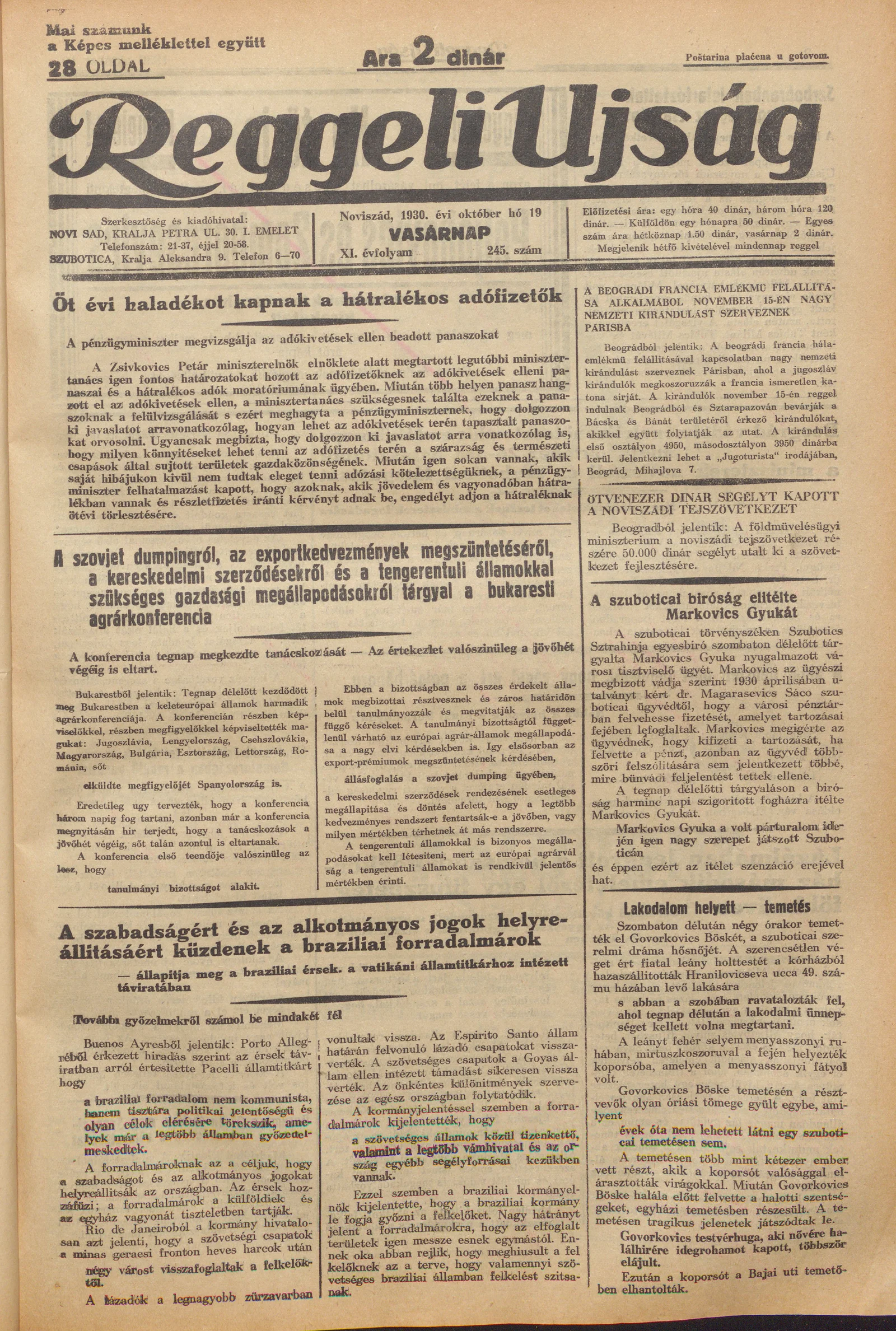 Reggeli Újság, 11. évf. 1930. október 19. 245. sz.