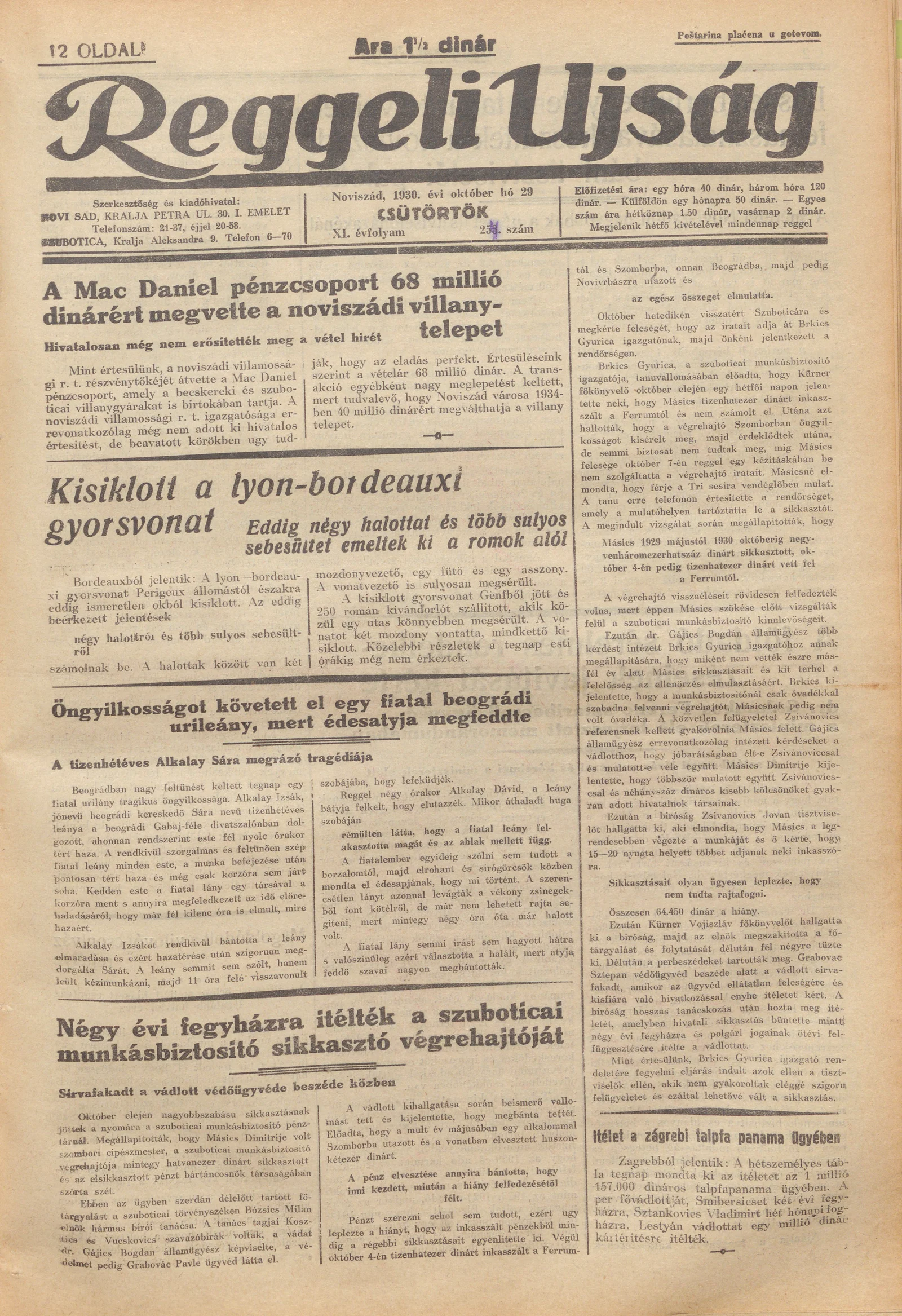 Reggeli Újság, 11. évf. 1930. október 30. 254. sz.