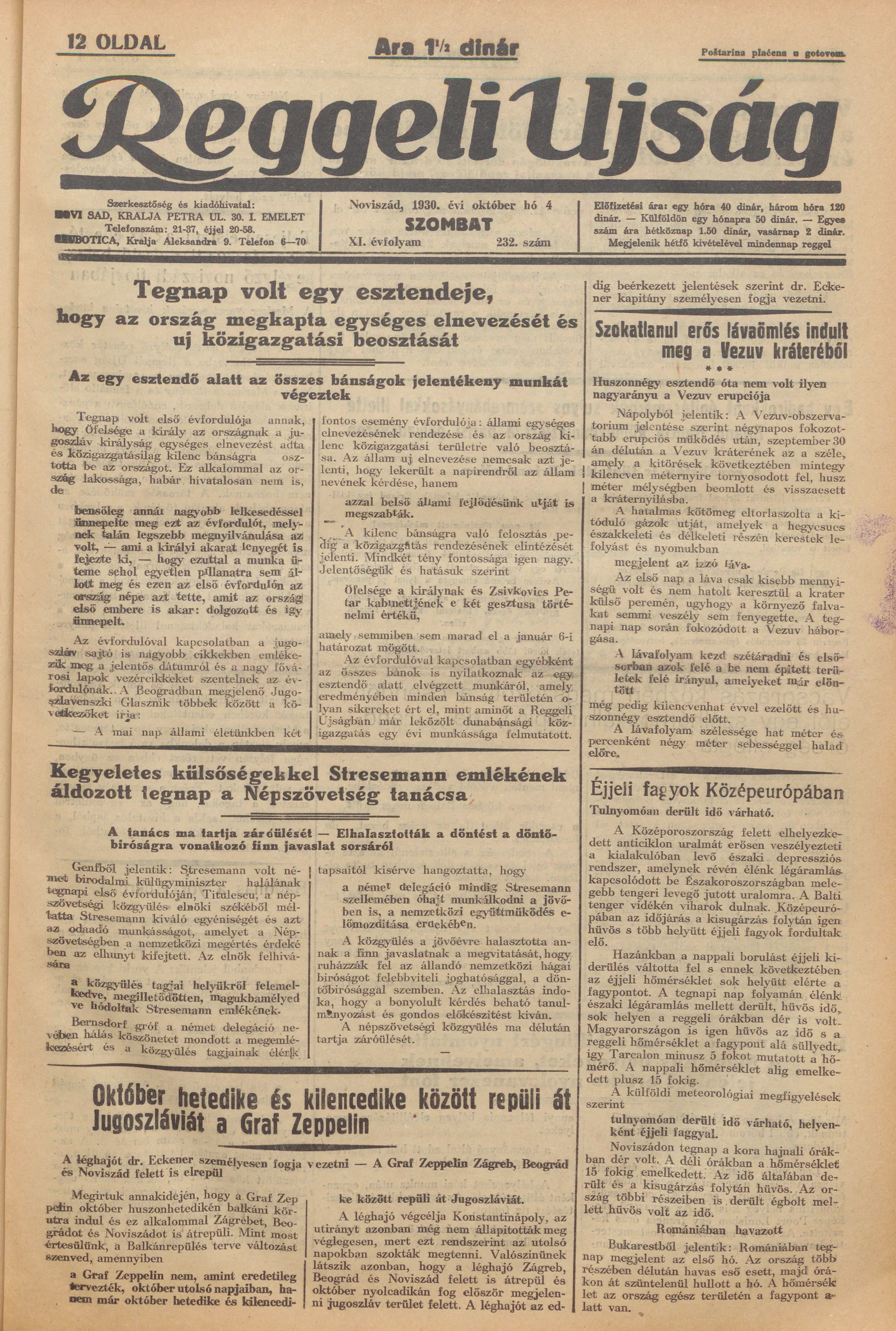 Reggeli Újság, 11. évf. 1930. október 4. 232. sz.