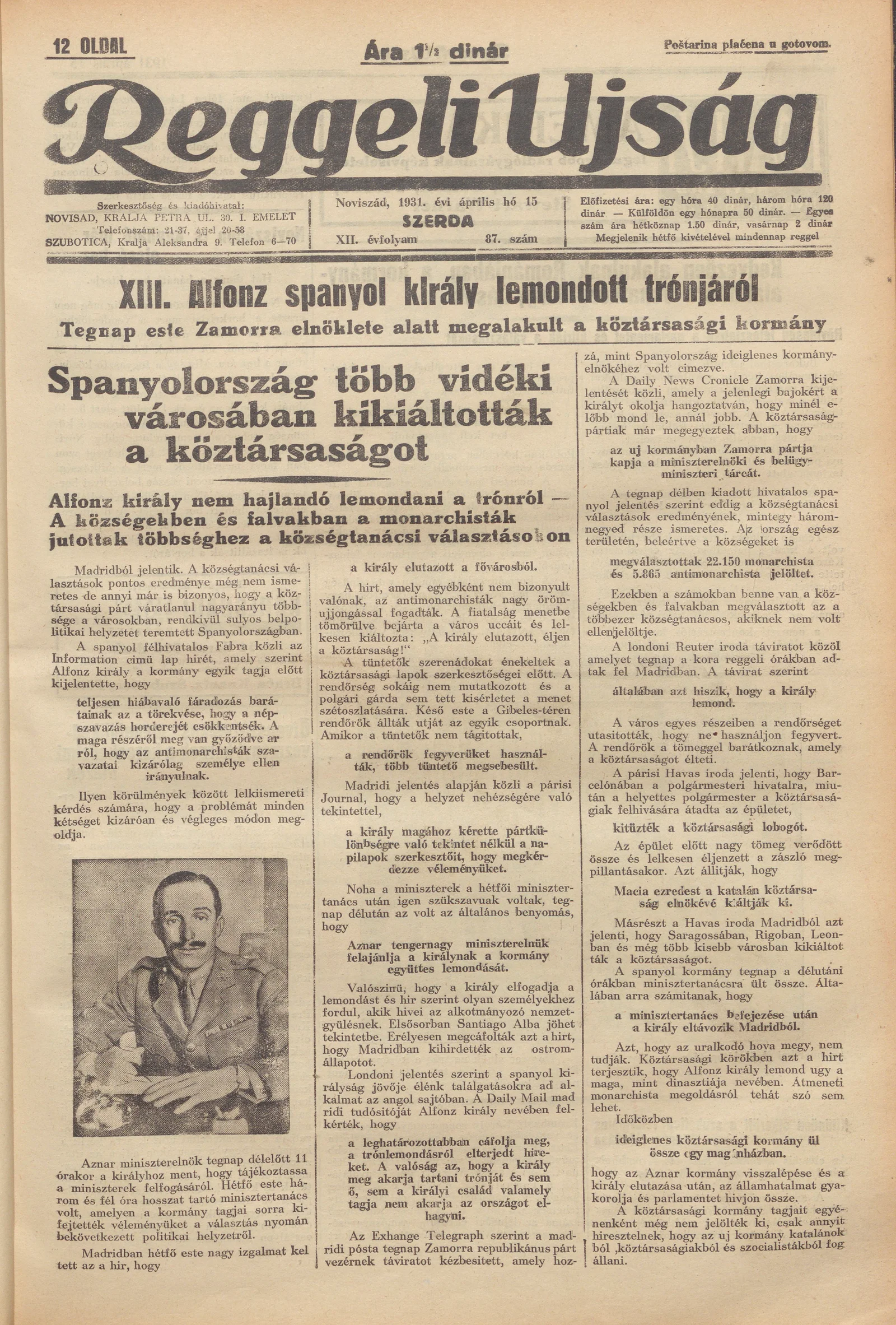 Reggeli Újság, 12. évf. 1931. április 15. 87. sz.
