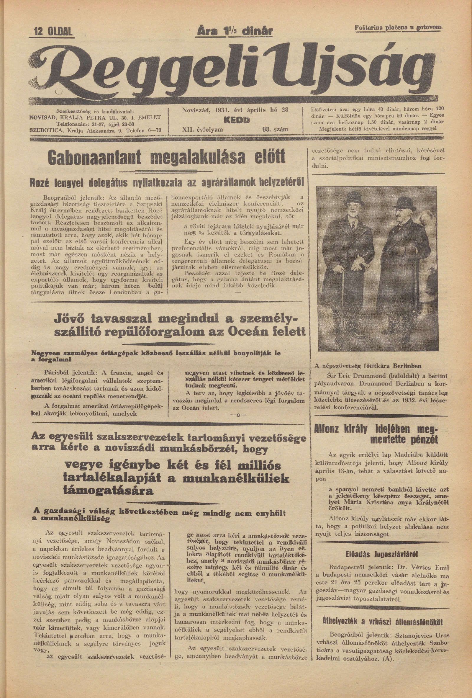Reggeli Újság, 12. évf. 1931. április 28. 98. sz.