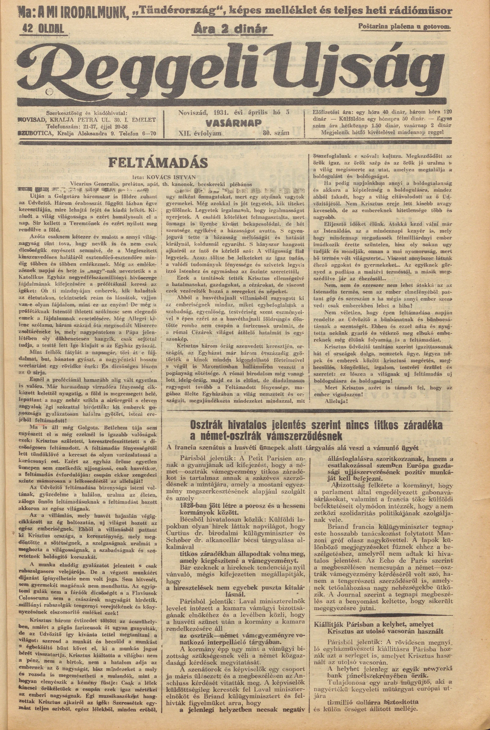 Reggeli Újság, 12. évf. 1931. április 5. 80. sz.