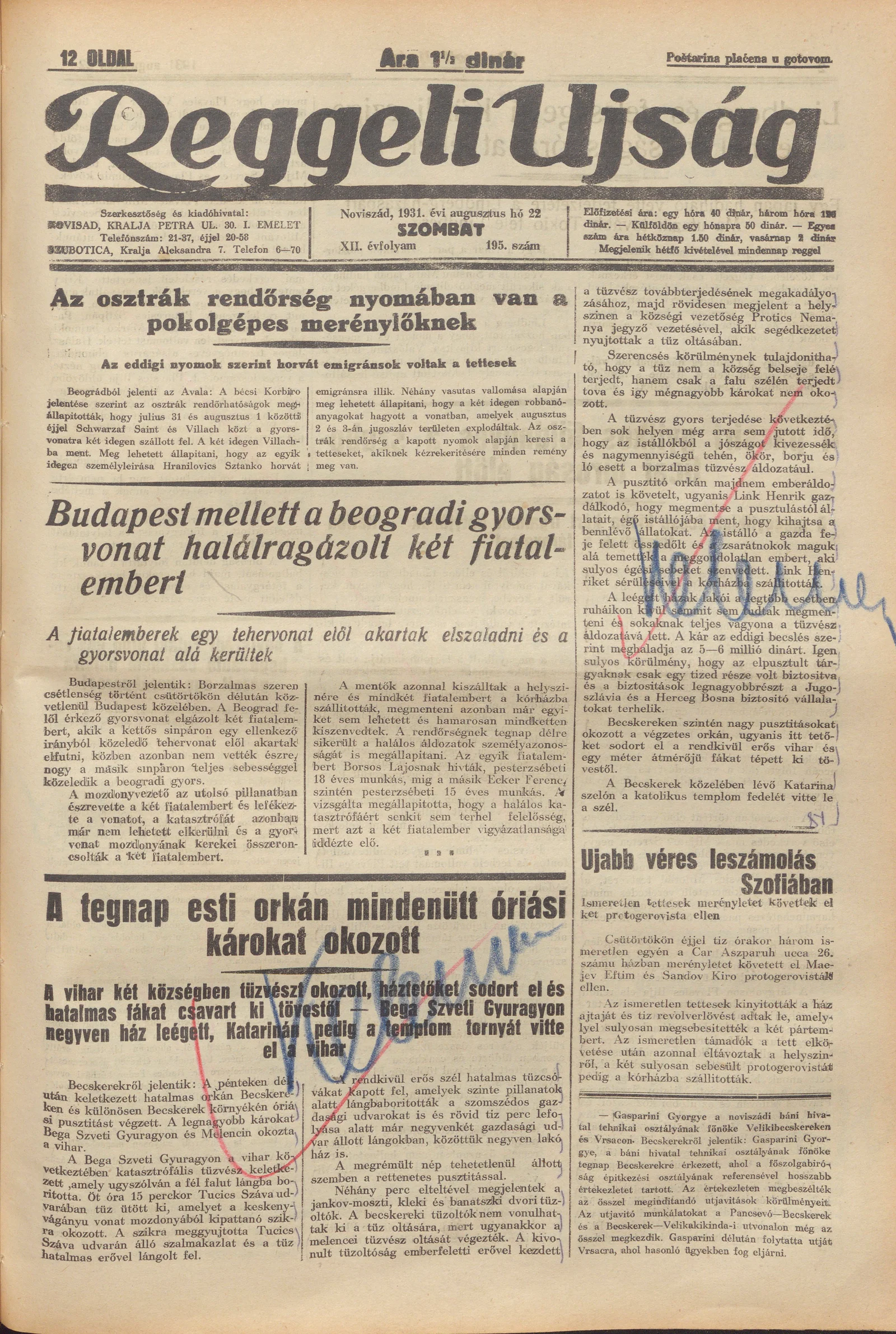 Reggeli Újság, 12. évf. 1931. augusztus 22. 195. sz.